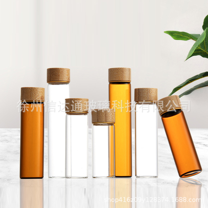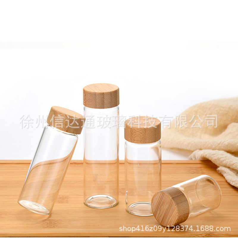 竹蓋ナット口管製瓶高ホウ素シリコン直径37mm試薬瓶透明ガラス密封瓶願い事瓶虫草瓶