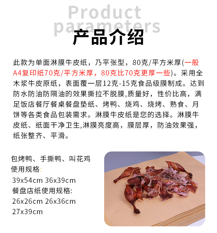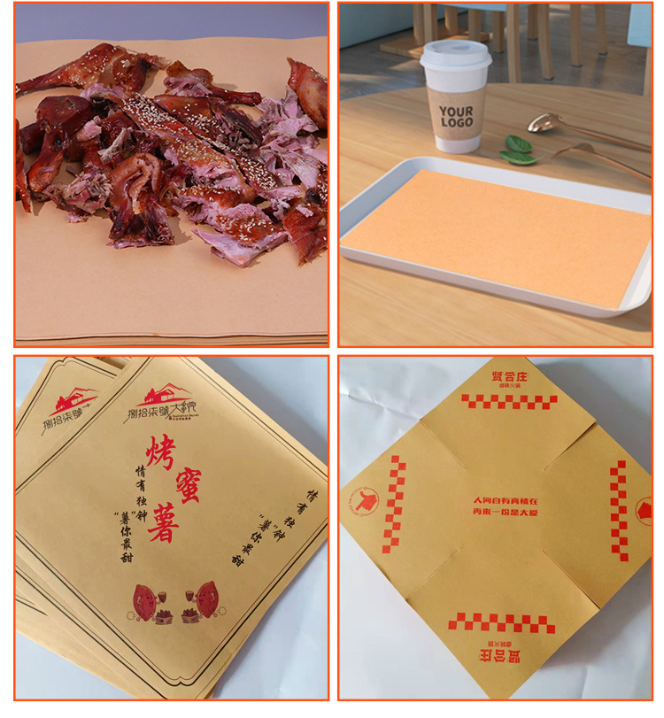 油に強い牛革紙でコーティングされた焼き鶏、焼き鴨、麻椒鶏の包装紙、焼き羊肉、手作り海鮮、テーブルマット用紙