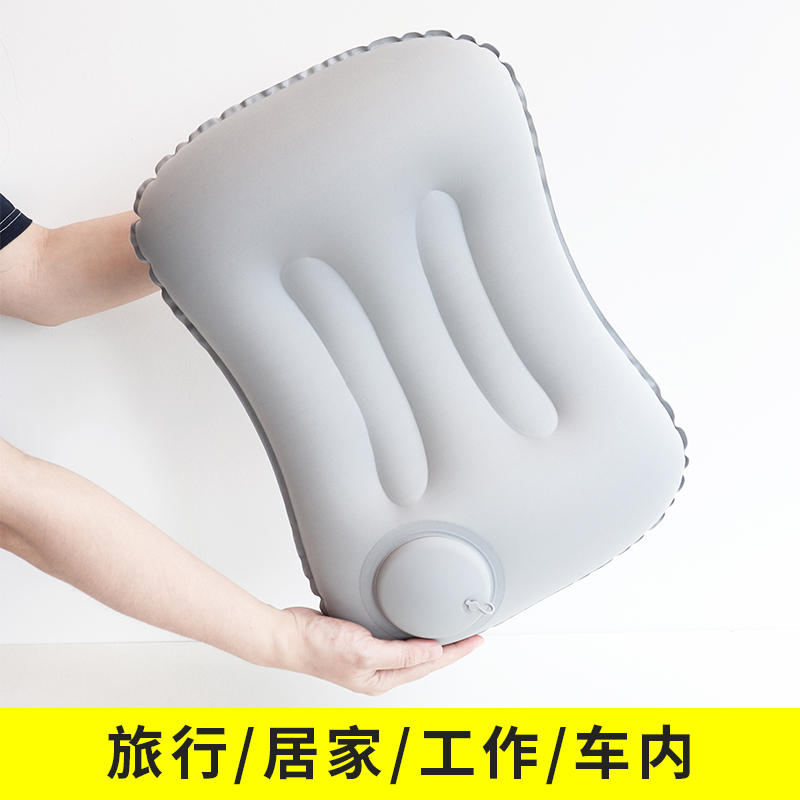 按压式充气枕头旅行枕便携长途坐飞机高铁腰部支撑腰垫靠枕汽车
