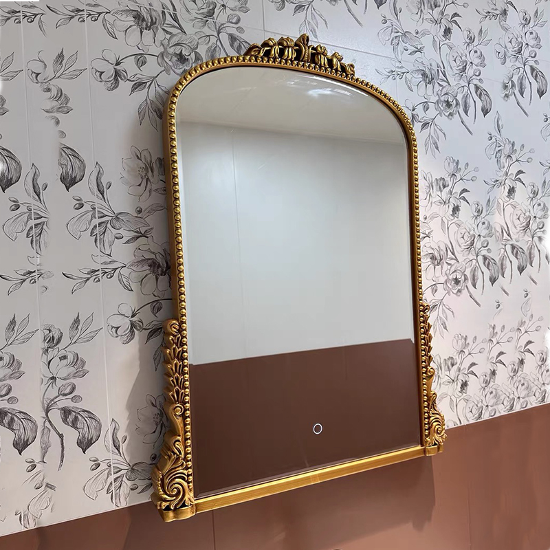 フレンチレトロバスルームミラーヨーロピアンスタイル彫刻バスルームミラートイレバスルームミラー壁掛け玄関暖炉装飾ミラー