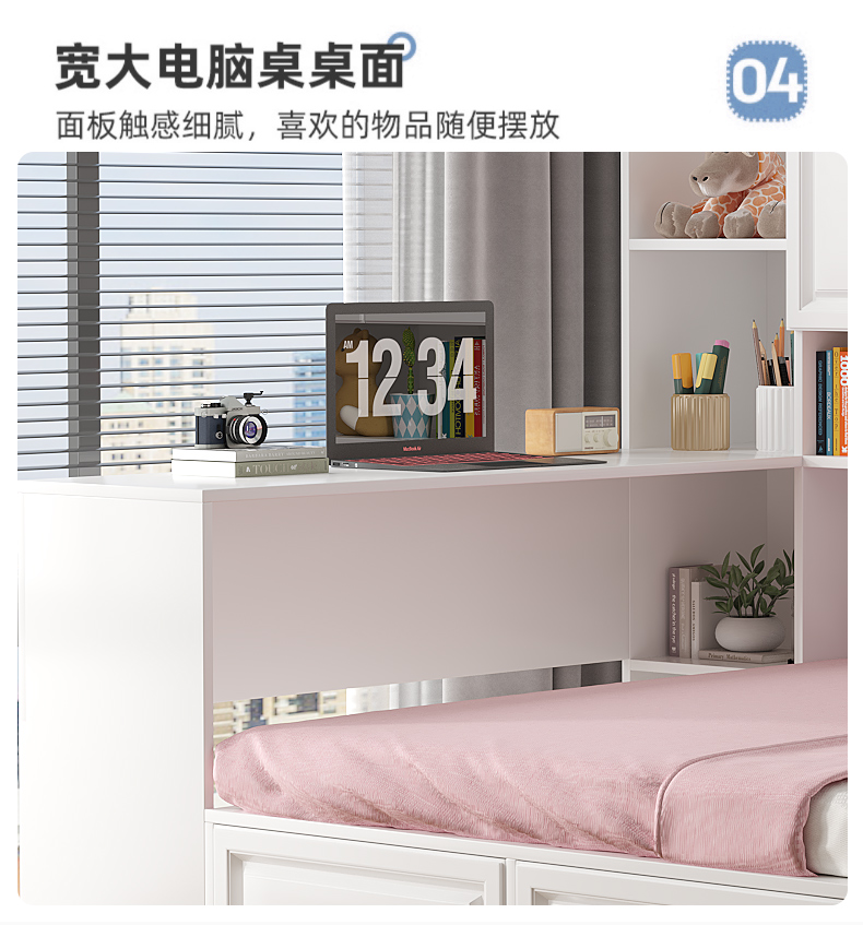 3e木の畳のベッドのタンスのベッドの一体型の小さいタイプの机付きのベッドの棚の組み合わせのベッドの家庭用多機能の貯蔵物
