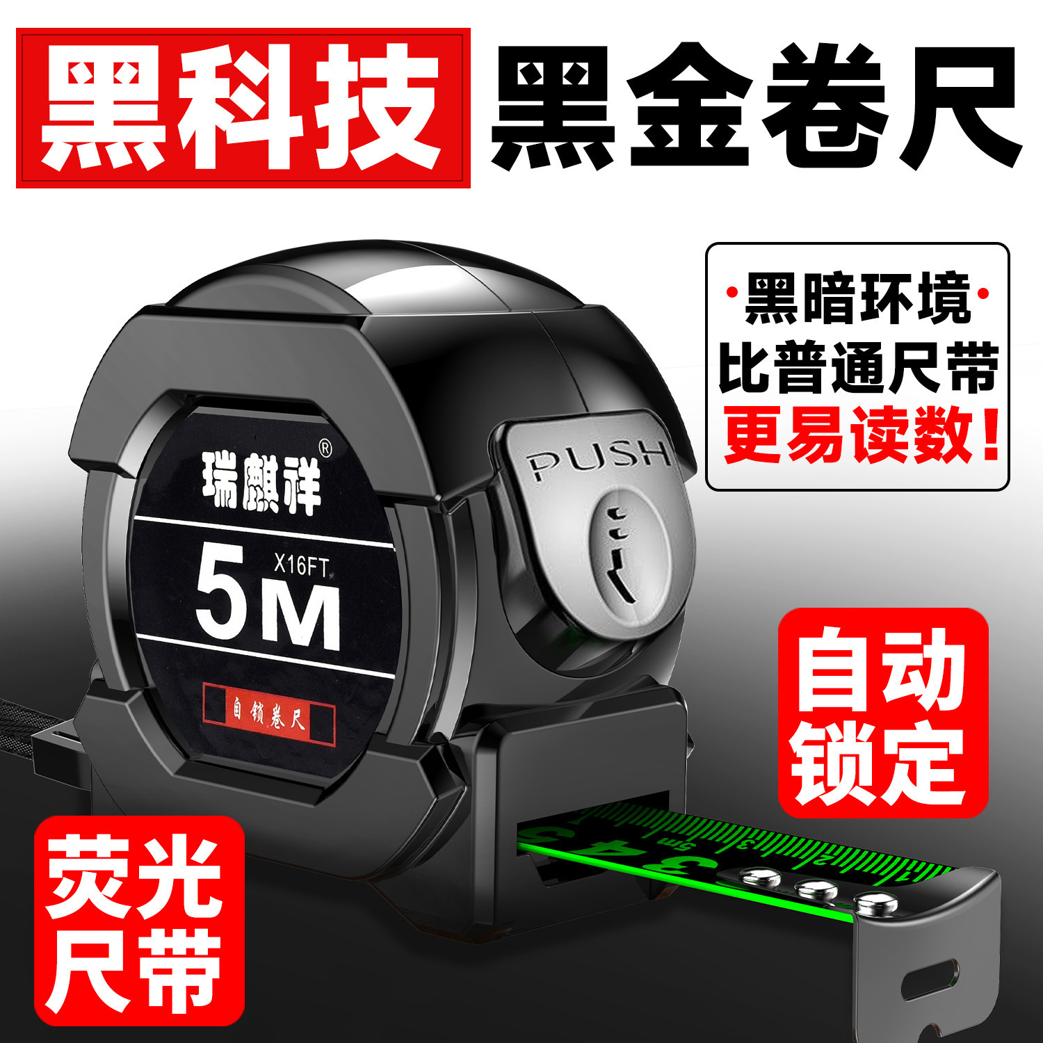 セルフロック蛍光鋼巻き尺高精度レーザースプレー黒金箱定規5メートル幅家庭用耐摩耗米定規