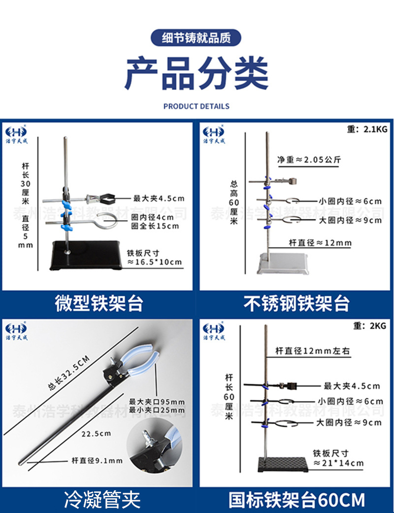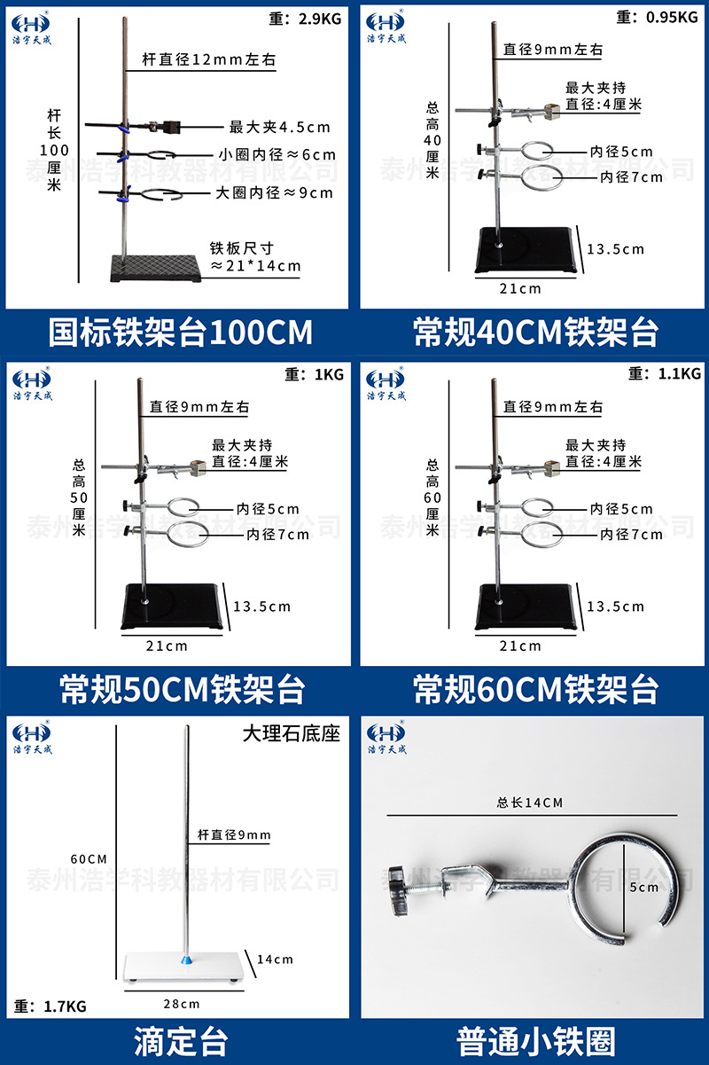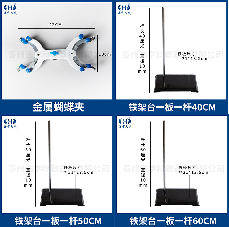 仕様 ミニチュア鉄製スタンド,従来の40cm鉄製スタンド,従来の50cm鉄製スタンド,従来の60cm鉄製スタンド,ステンレス製の鉄製プラットフォーム,滴定台(バタフライクランプを除く),普通の小さな鉄のリング,普通の鉄のフープ,普通の大きな鉄の指輪,クロスクランプ,フラスコクランプ,通常のユニバーサルクランプ,コンデンサーチューブクランプ,プラスチック製のバタフライクリップ,金属製のバタフライクリップ,アイアンスタンド プレート1枚、ポール1本 40cm,鉄製スタンド、ボード1枚、ポール1本 50cm,鉄製スタンド、ボード1枚、ポール1本 60cm