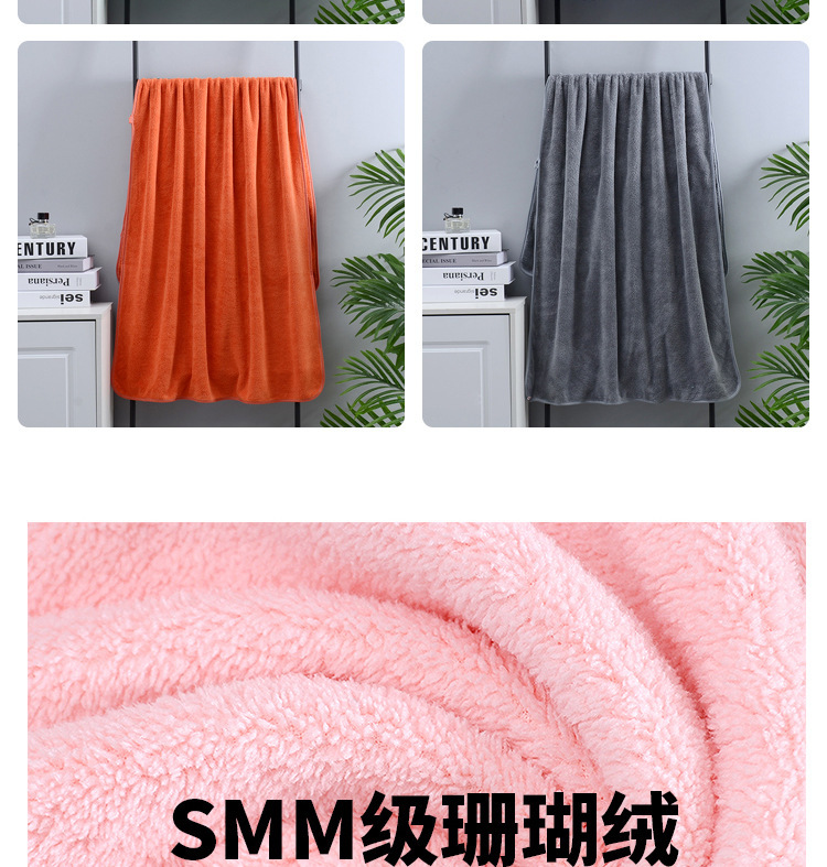 サンゴのベルベットのバスタオルは90*180入浴のサイズが純綿より吸水してタオルを厚くしてカップルのバスタオルを大きくする