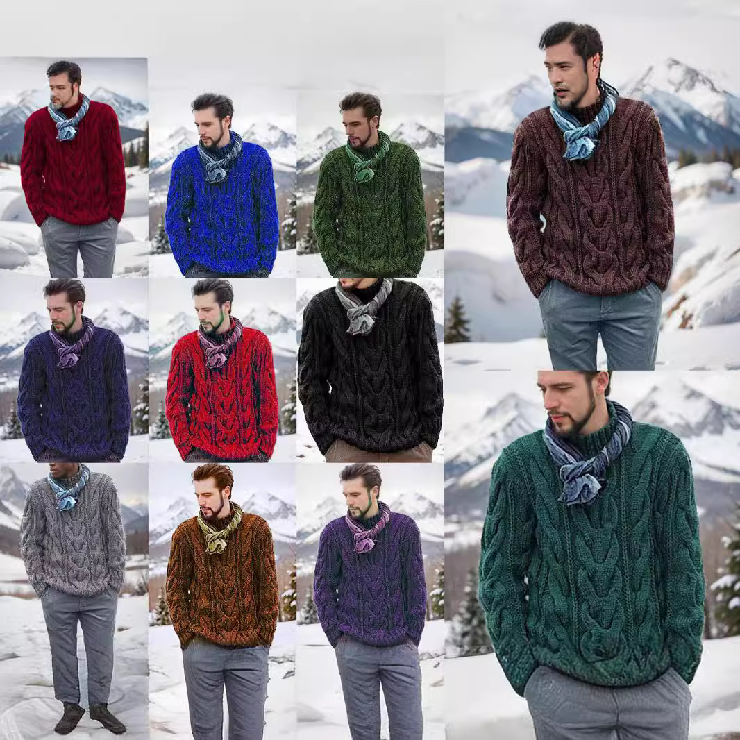 2024 クロスボーダーヨーロッパとアメリカのメンズセーターアマゾンニットプルオーバーファッションラウンドネックスリムセーター紳士服