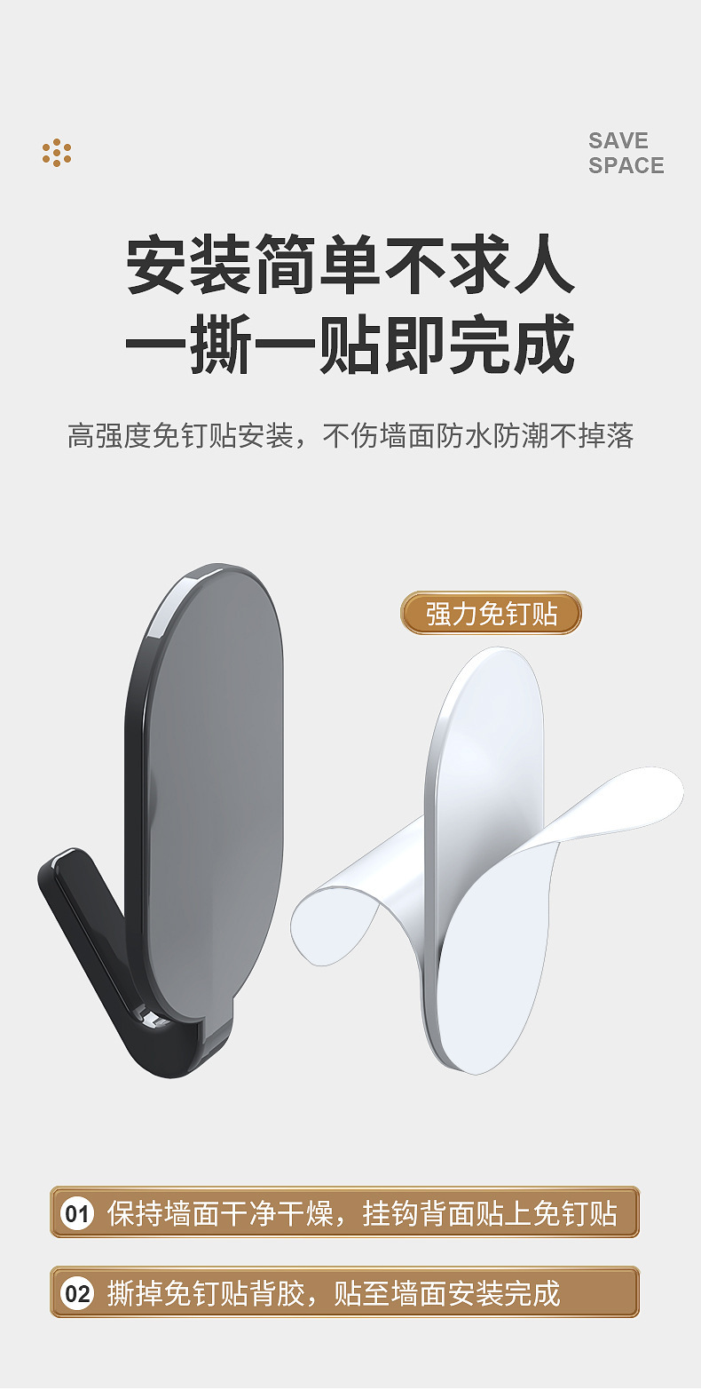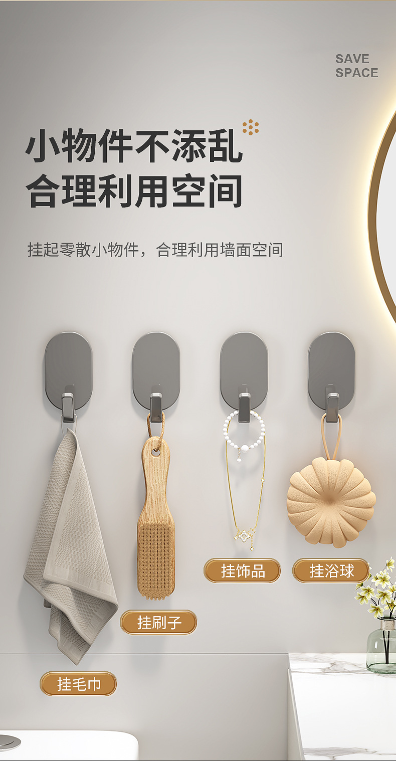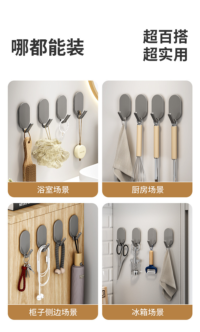 挂钩强力粘胶免打孔厨房浴室门后贴墙壁上无痕粘钩承重不锈钢钩子