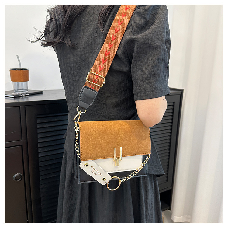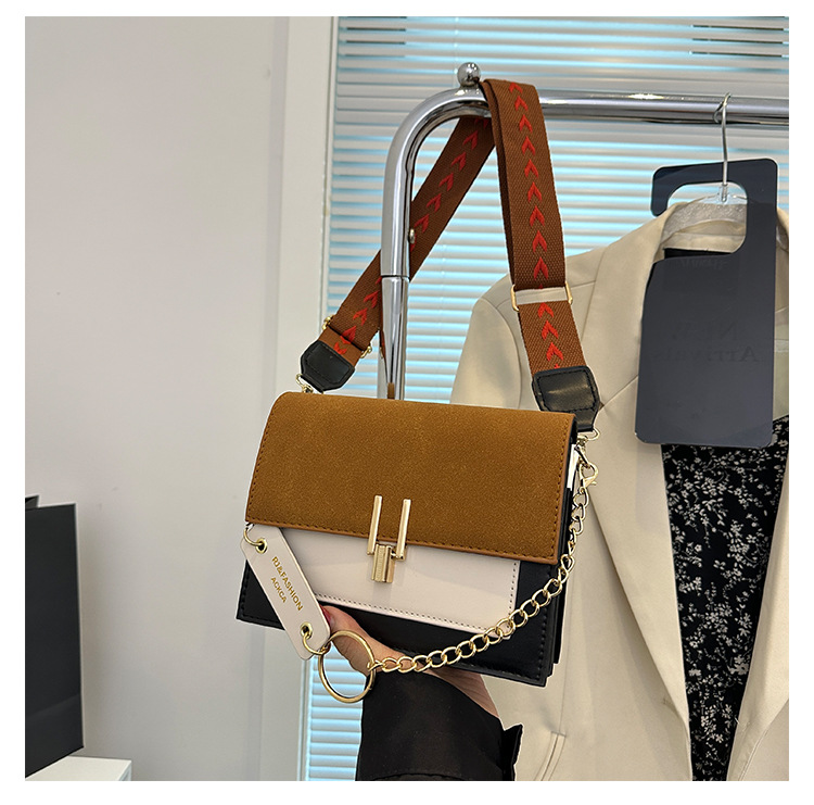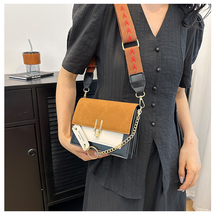 ワイドショルダーストラップシングルショルダークロスボディバッグスモールバッグレディース2025春新作ファッション多用途コントラストカラーファッショナブルなスモールスクエアバッグトレンディ