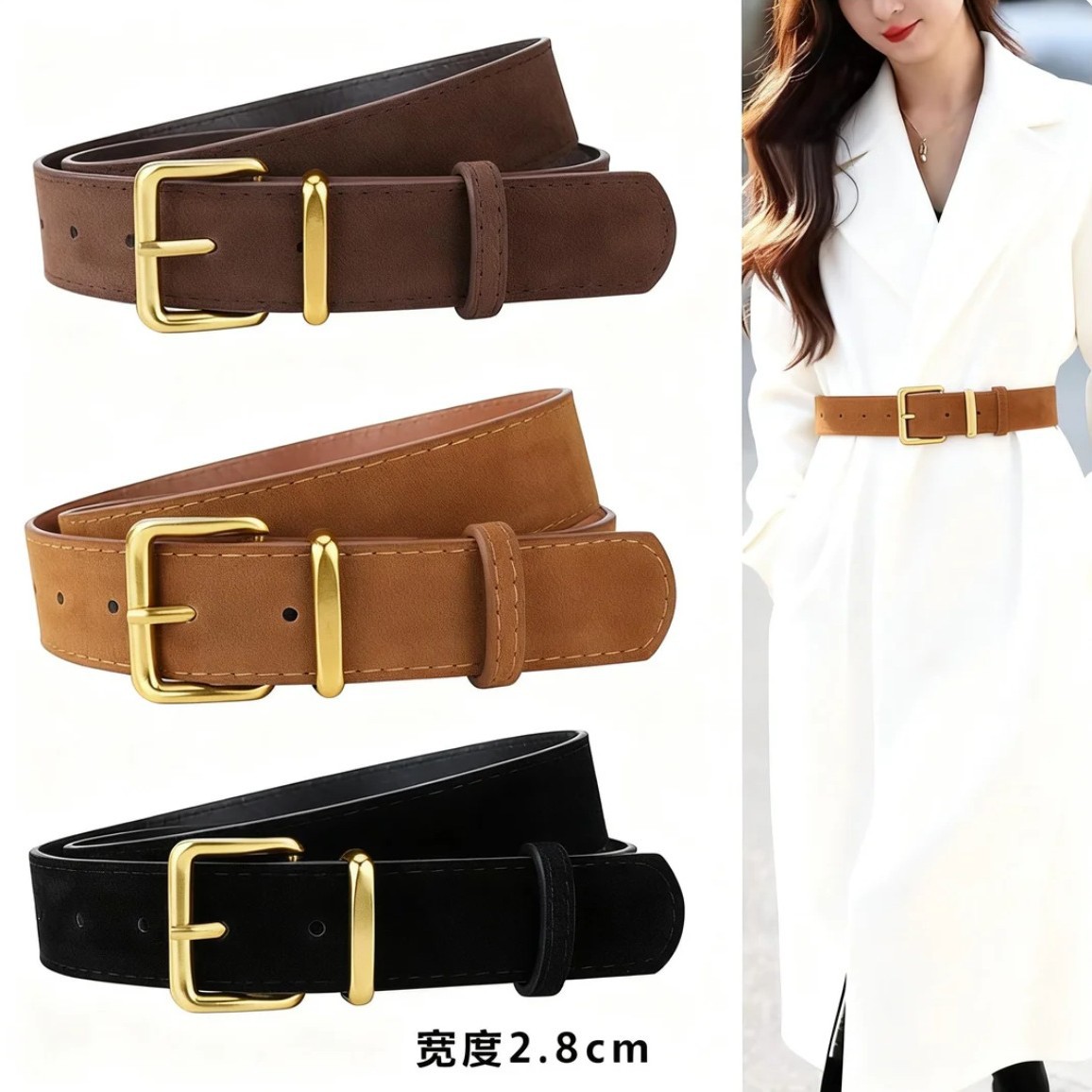 跨境爆款复古麂皮绒腰带针扣皮带韩系高级感配大衣牛仔裤裤带