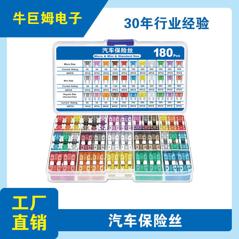 自動車インサート式保険シート180pcs箱入り自動車ヒューズアルミ製中小番号セット