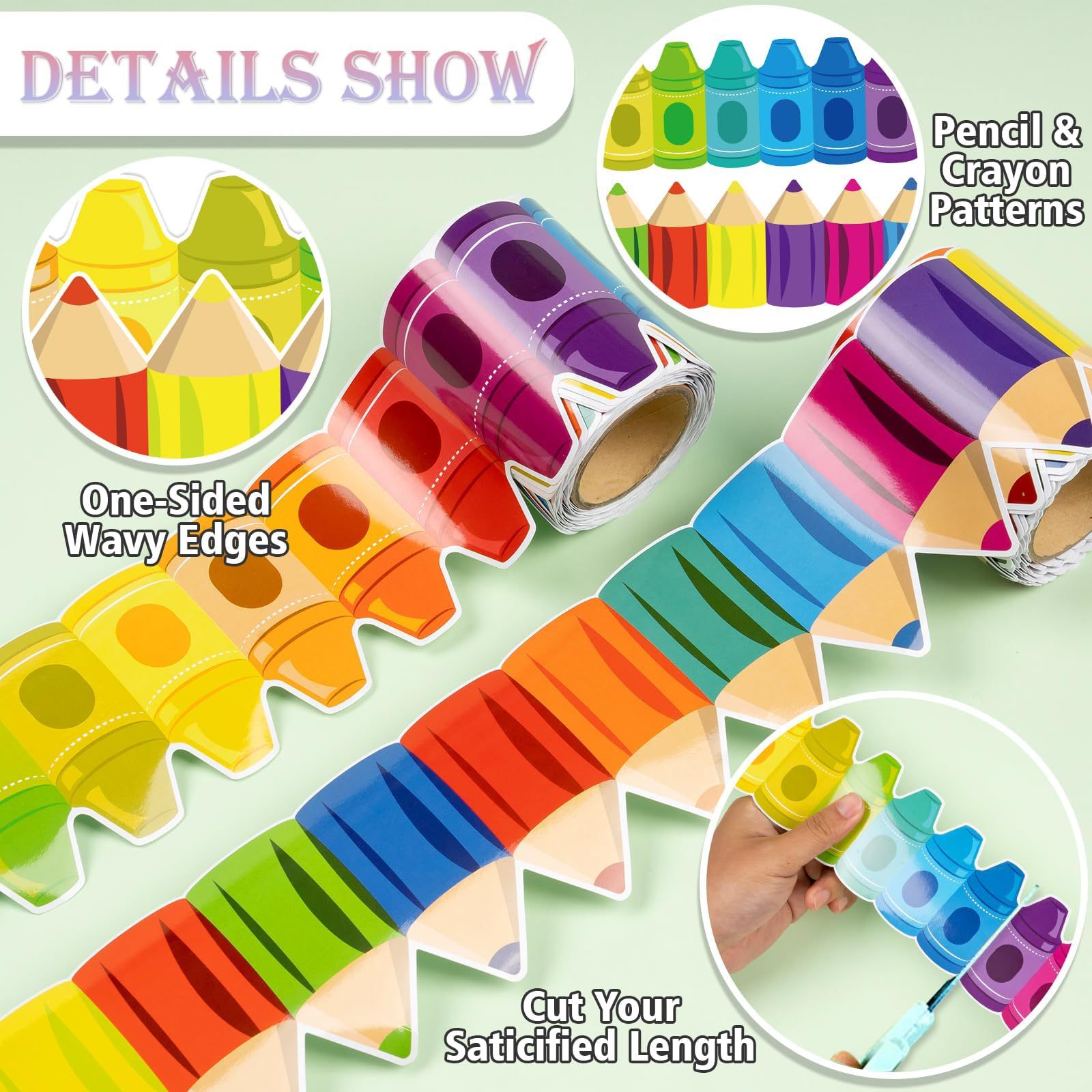 アマゾンクロスボーダー掲示板ボーダーレインボークレヨン掲示板自己粘着ボーダー装飾紙防水黒板装飾