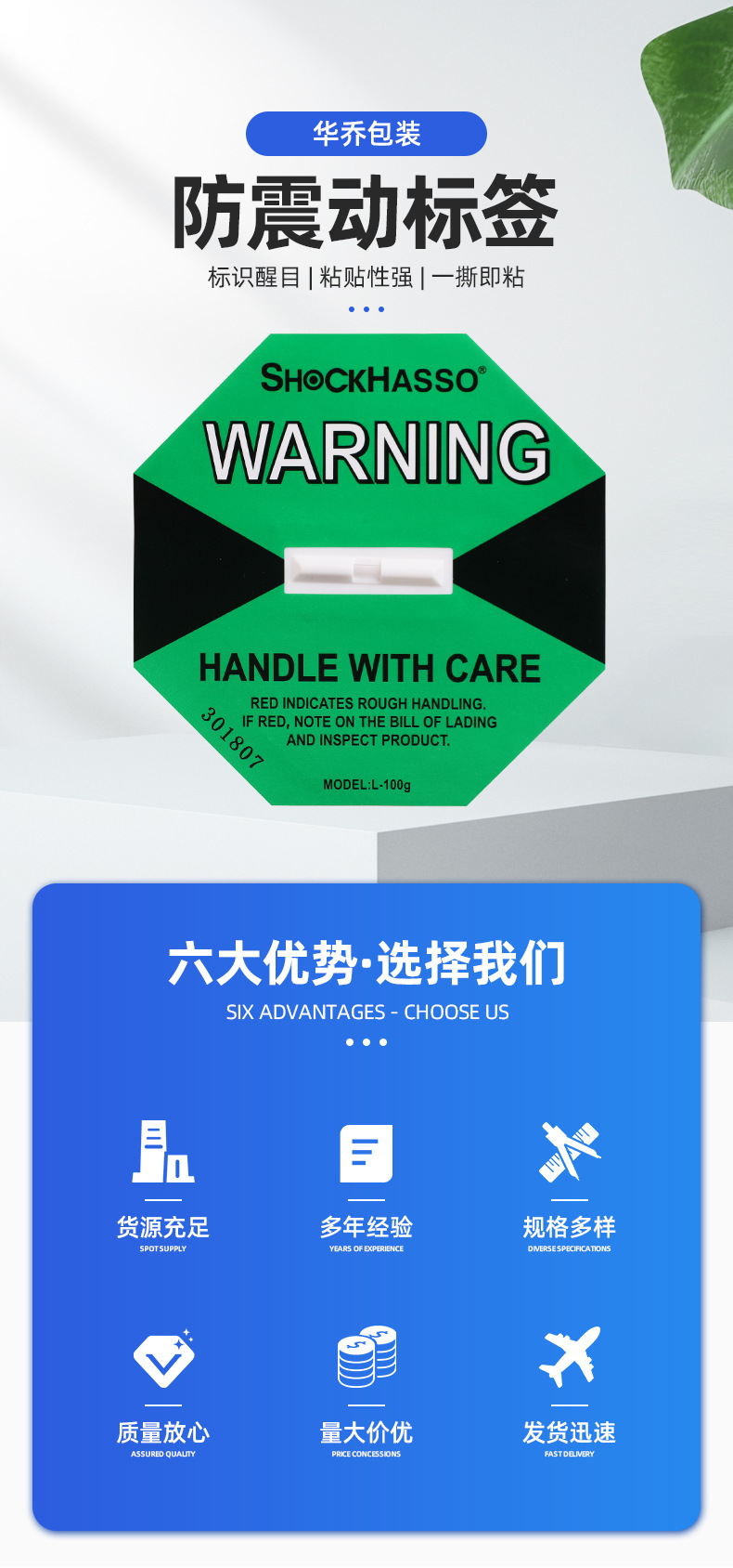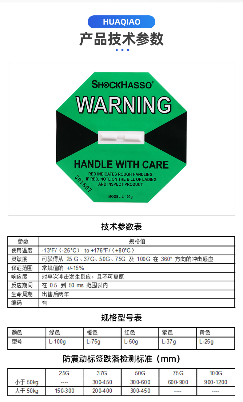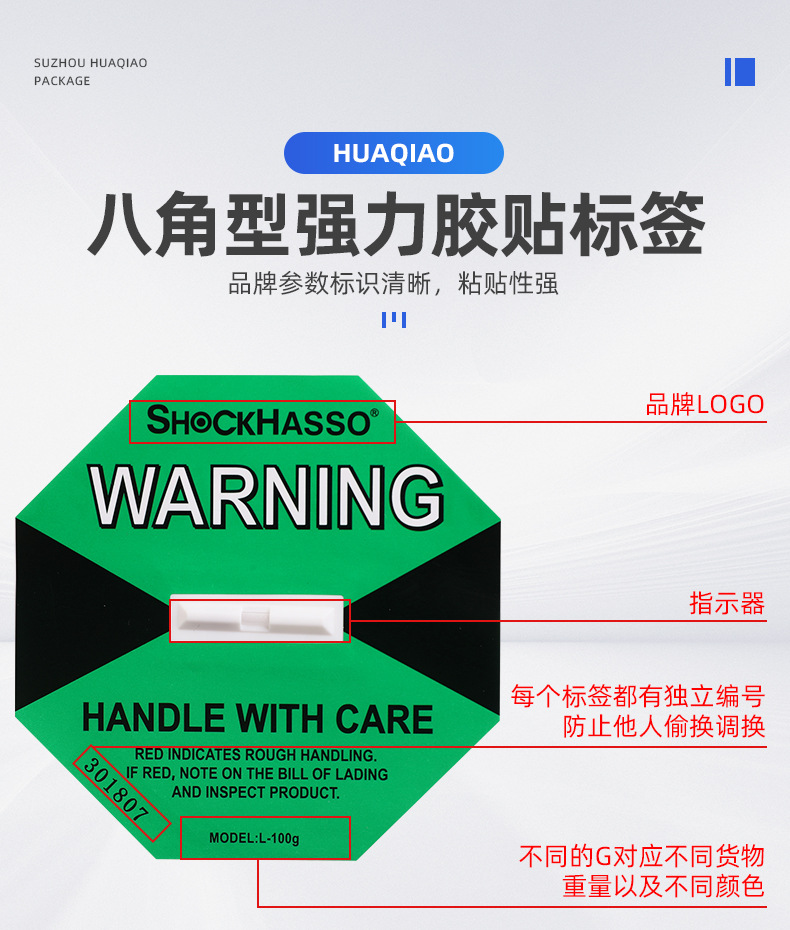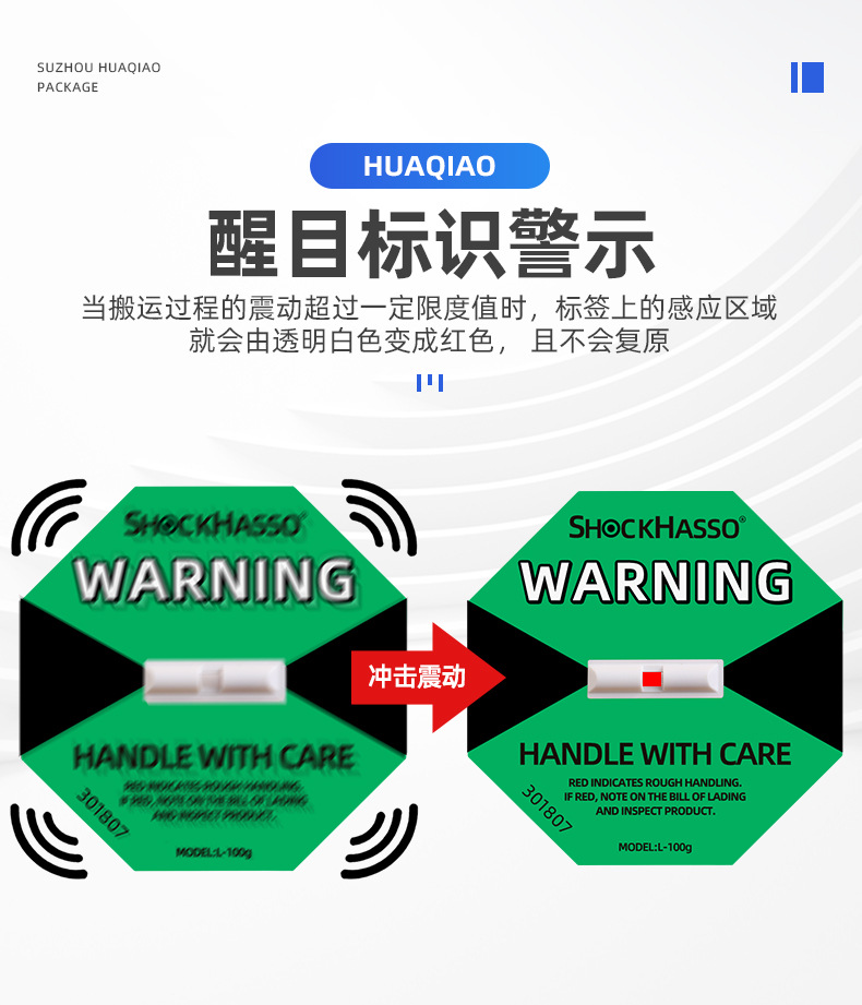 SHOCKHASSO 第二世代耐衝撃移動ラベル物流輸送監視傾斜防止耐衝撃表示ラベルステッカー