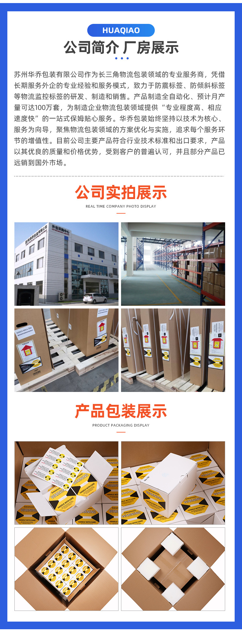 工場耐衝撃性および耐傾斜性ラベル中国語と英語の転倒防止および耐衝撃性ディスプレイ物流輸送監視衝突防止ラベル