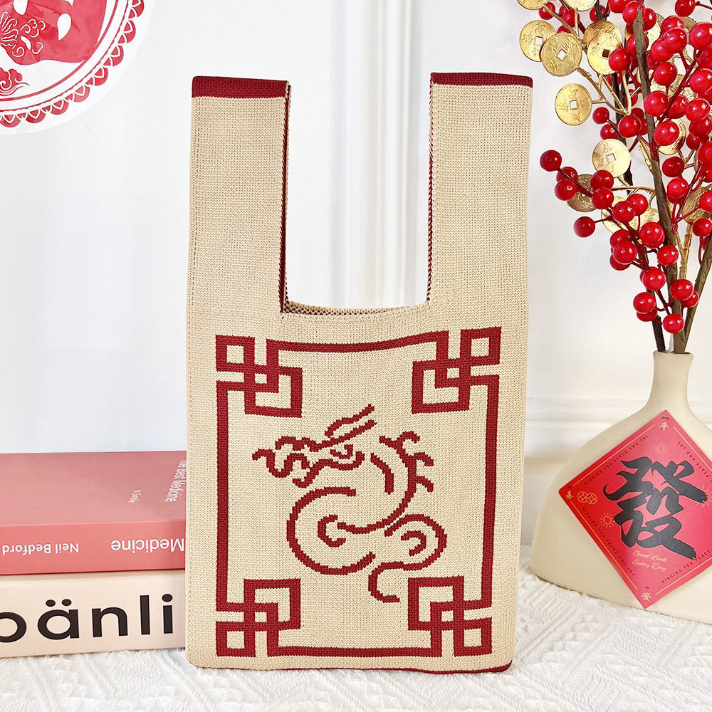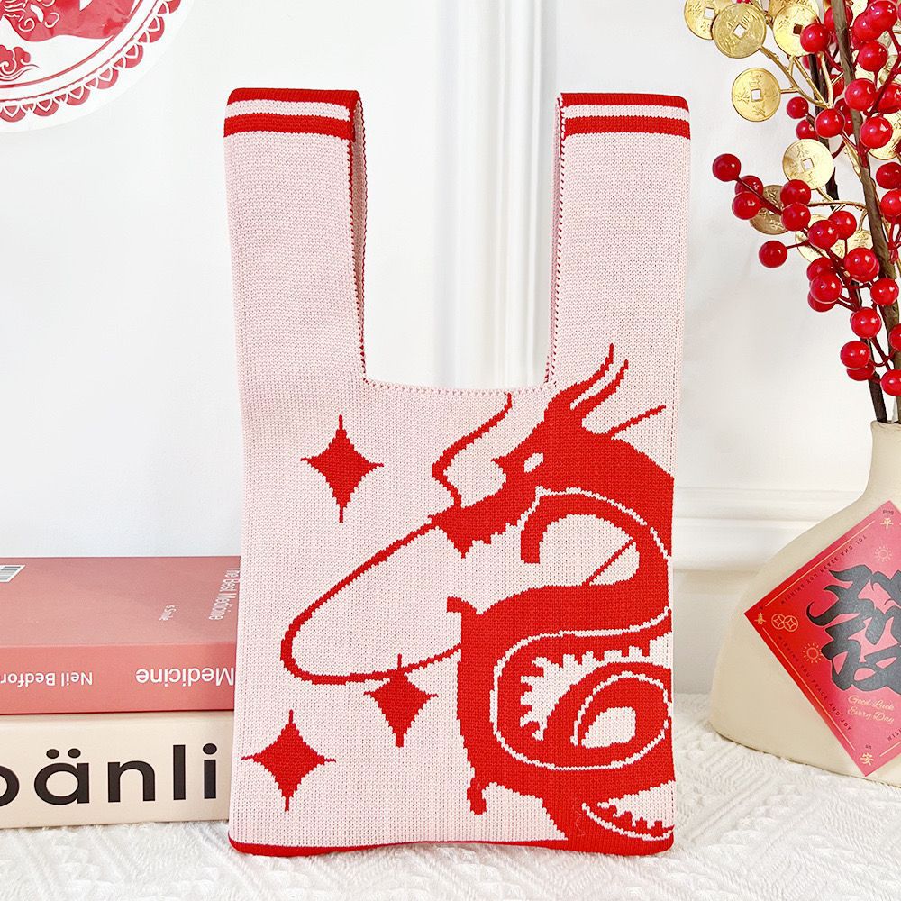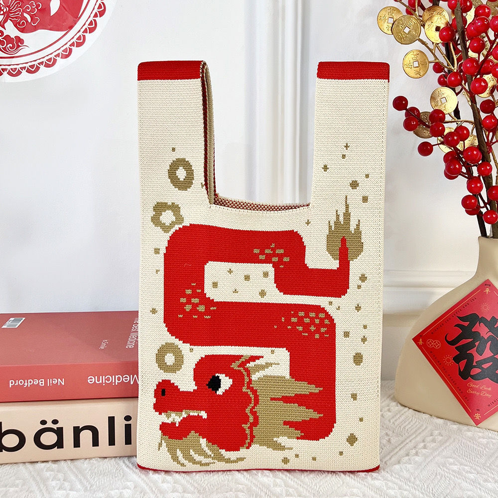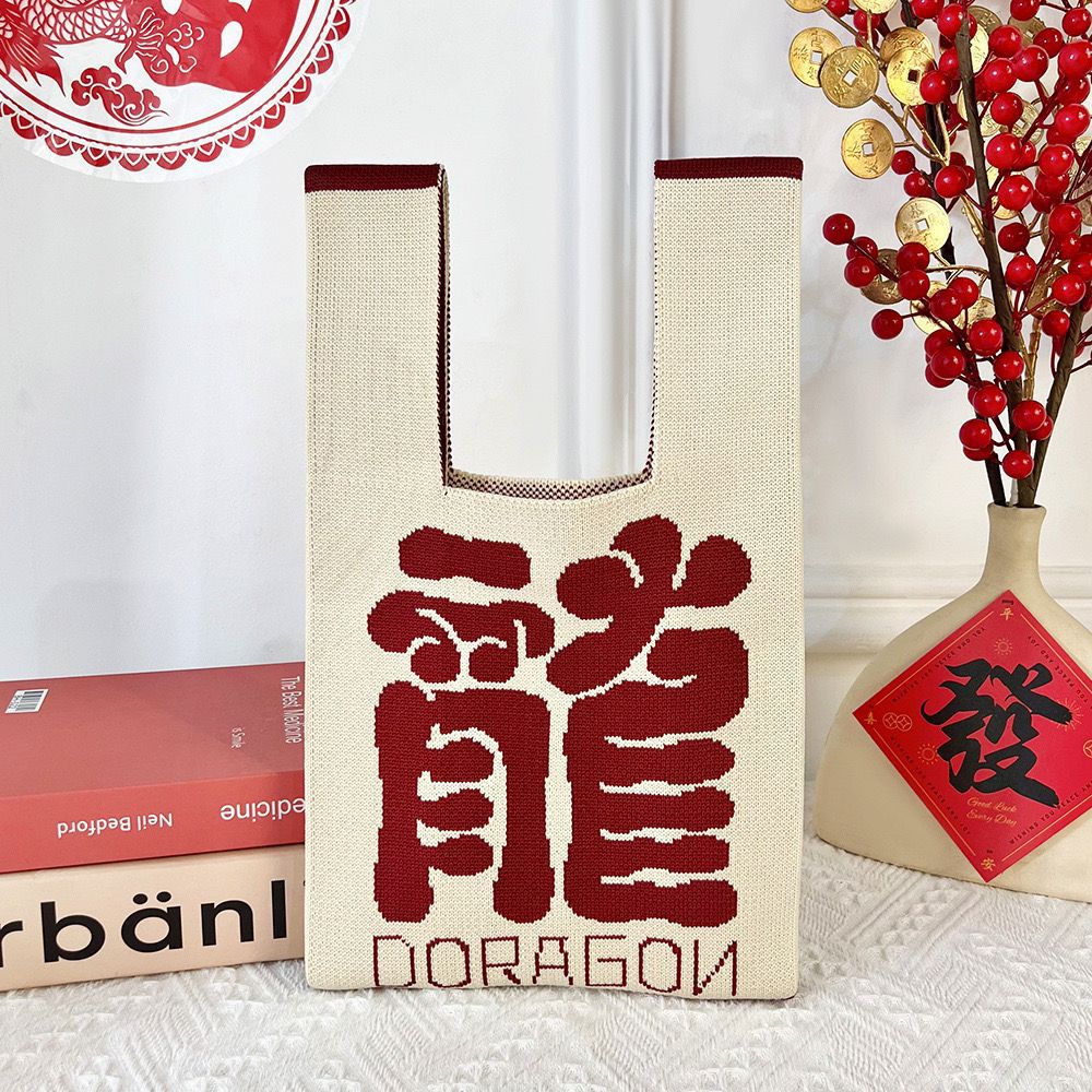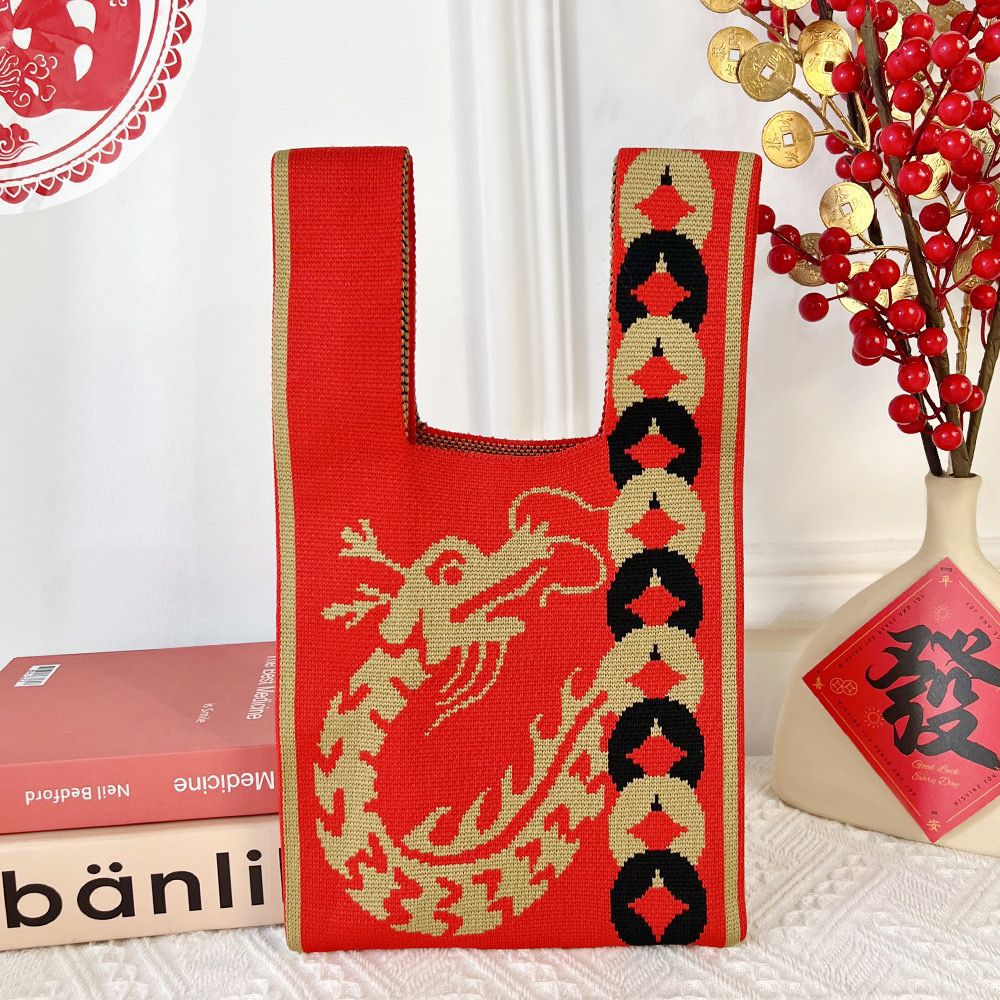 2024龍年赤いお祝いのニットのハンドバッグの女性は高級感があります。