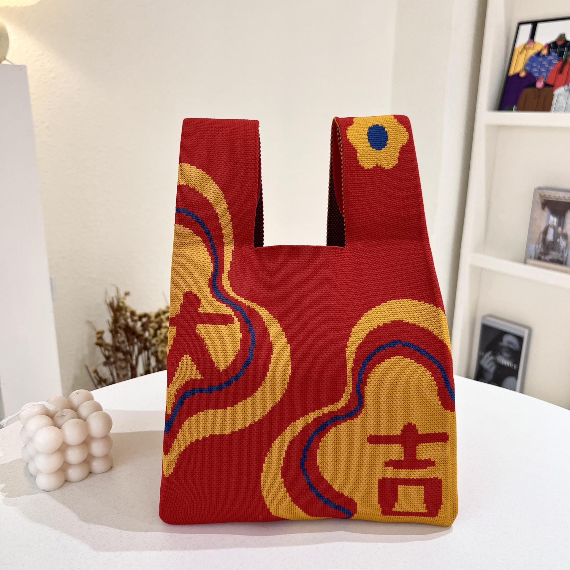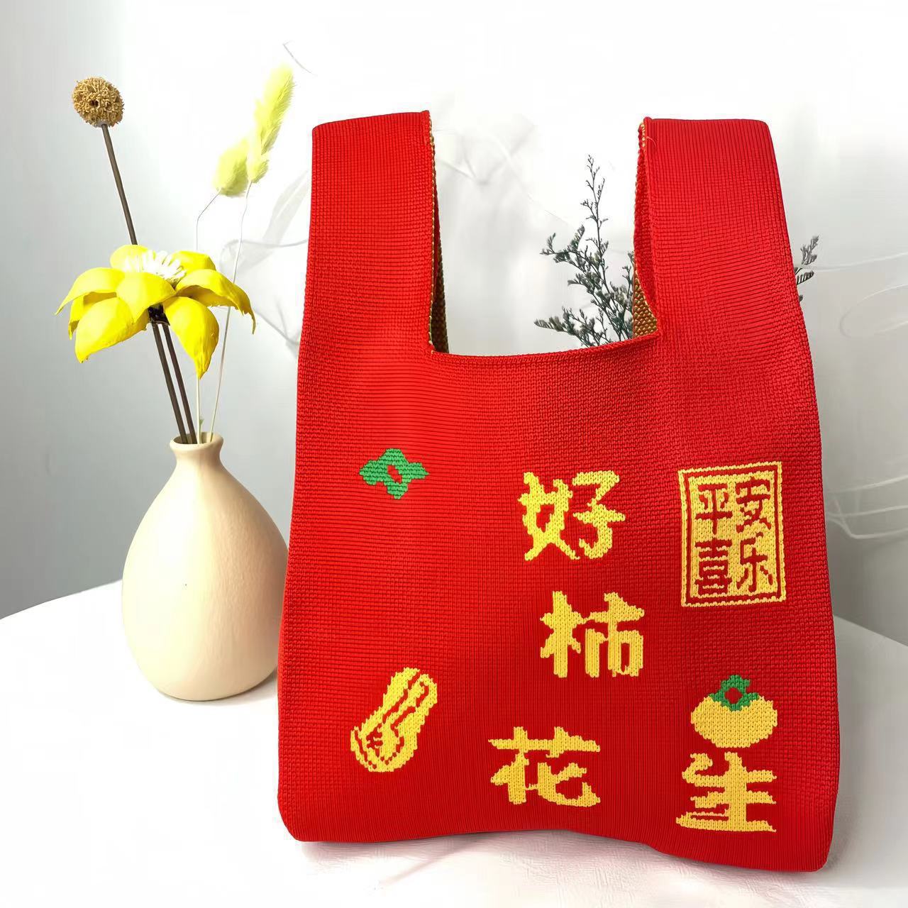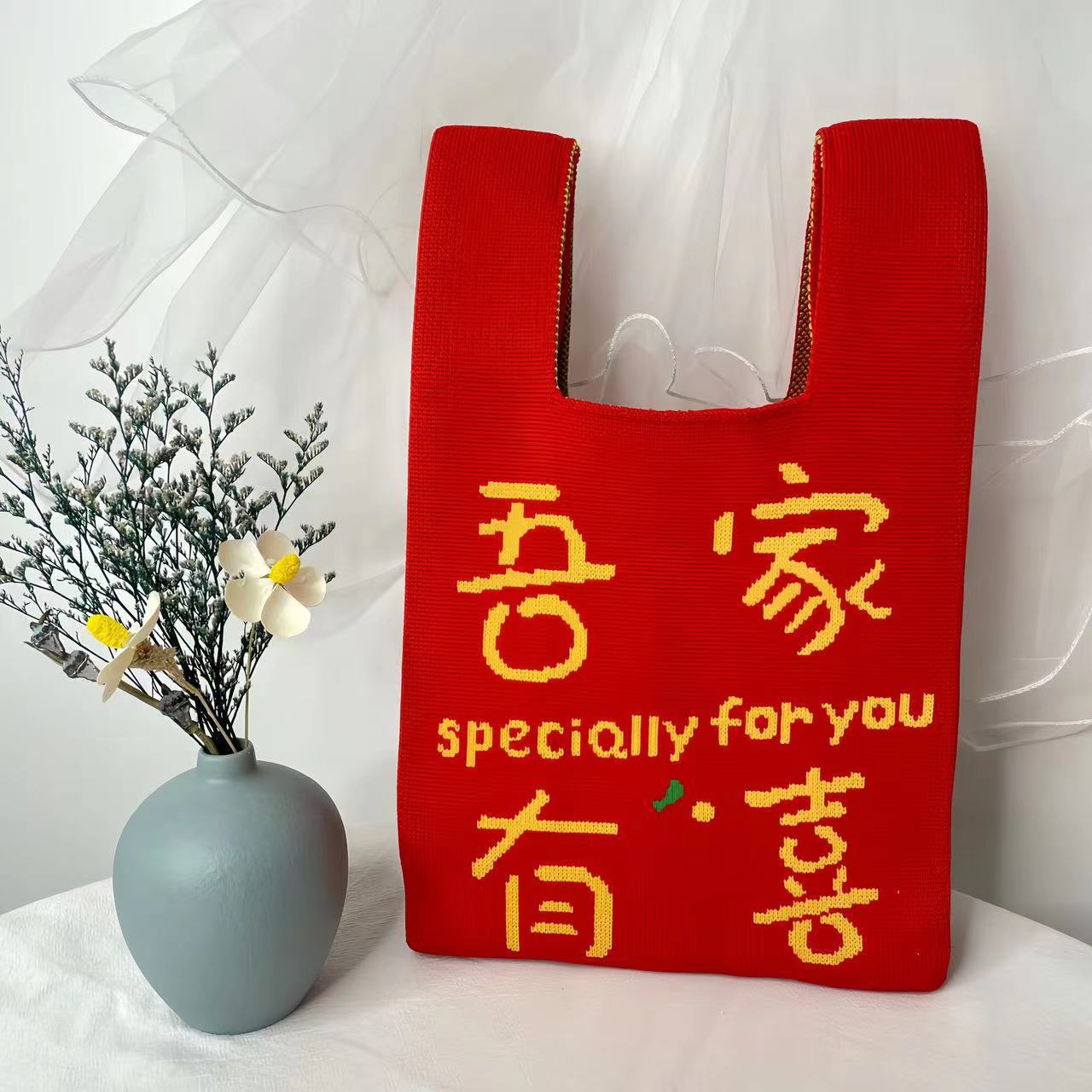 26年新款国风新年红色喜庆针织包手提包潮流百搭伴手礼休闲托特包