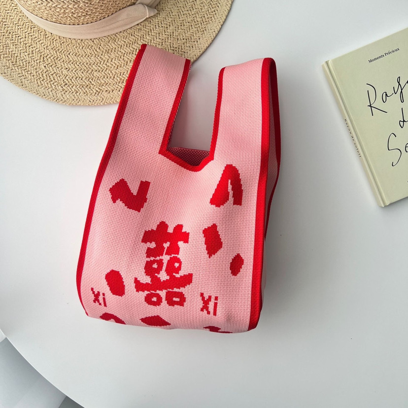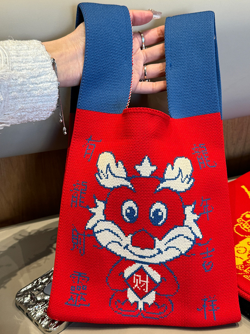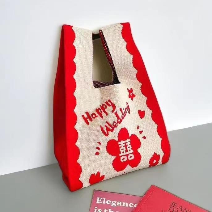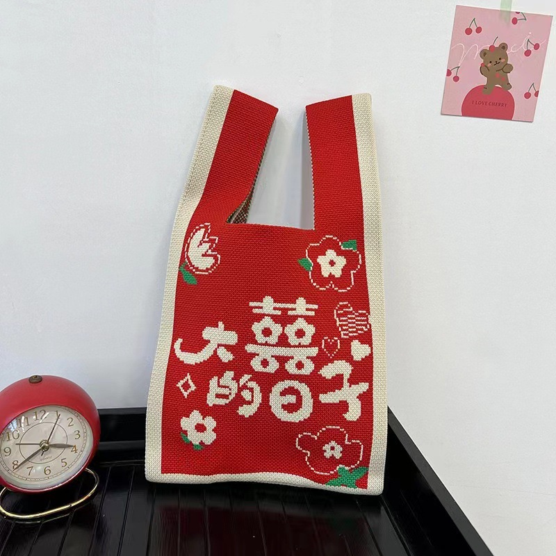 26年新款国风新年红色喜庆针织包手提包潮流百搭伴手礼休闲托特包