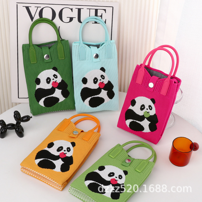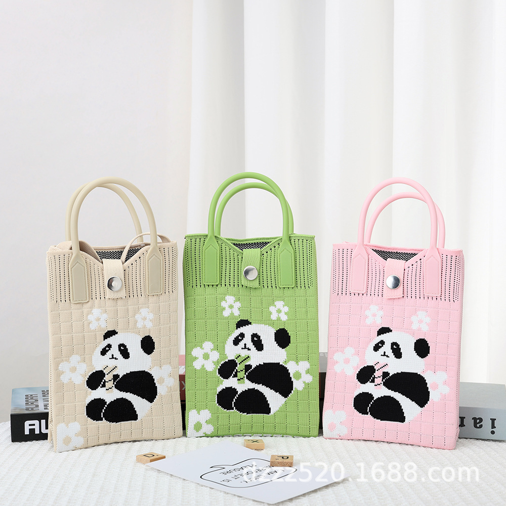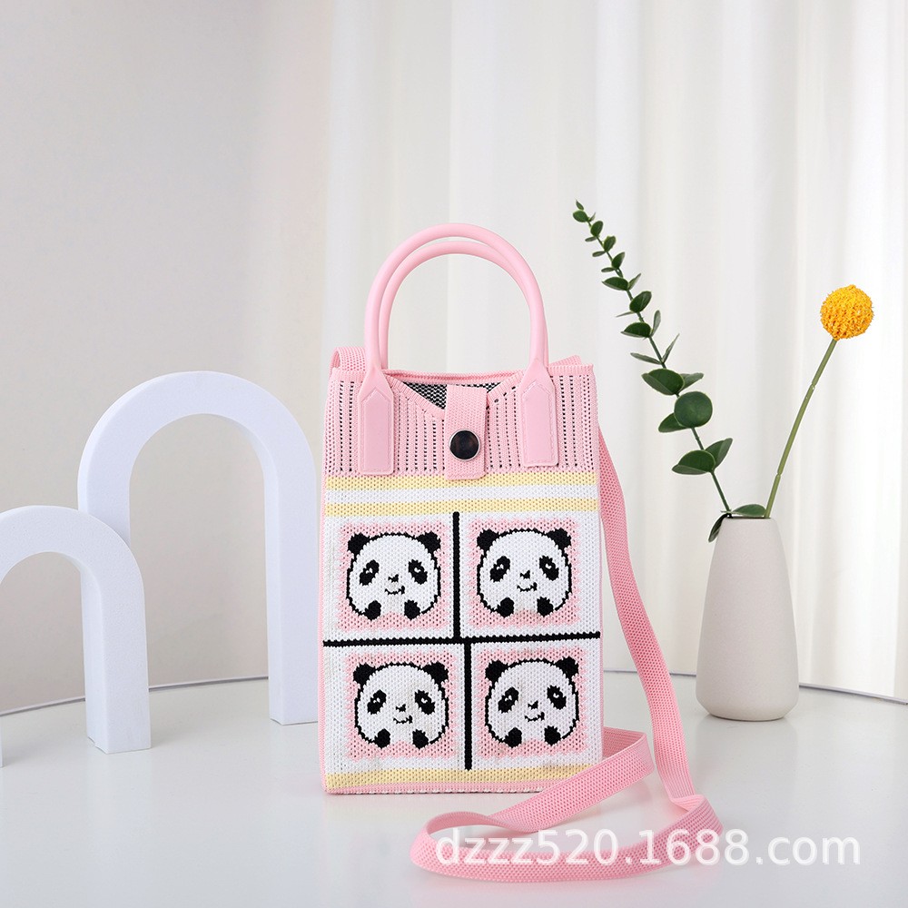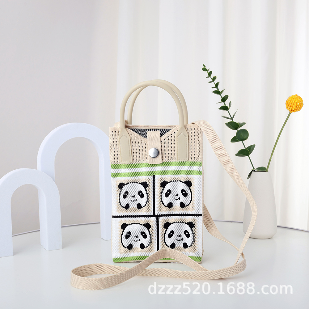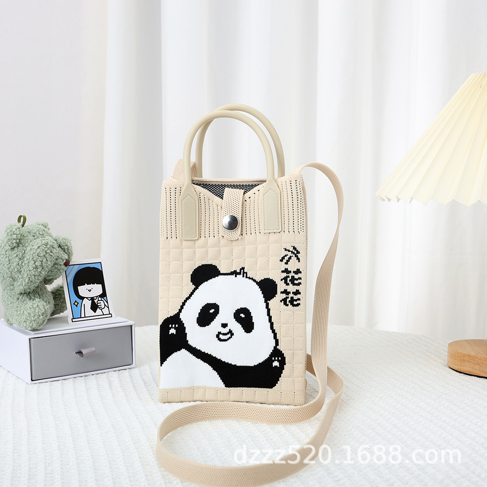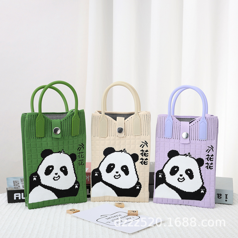 新作韓国風パンダニットバッグ、ハンドバッグ、ネットで話題の成都おじいちゃんパンダ、個性的なショルダー/斜め掛けバッグ