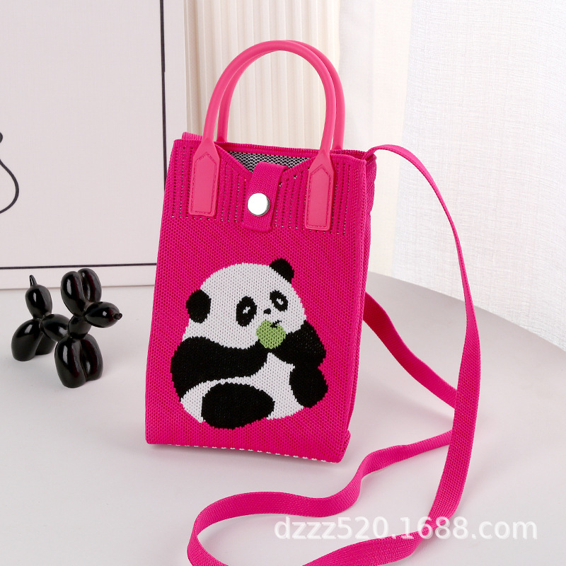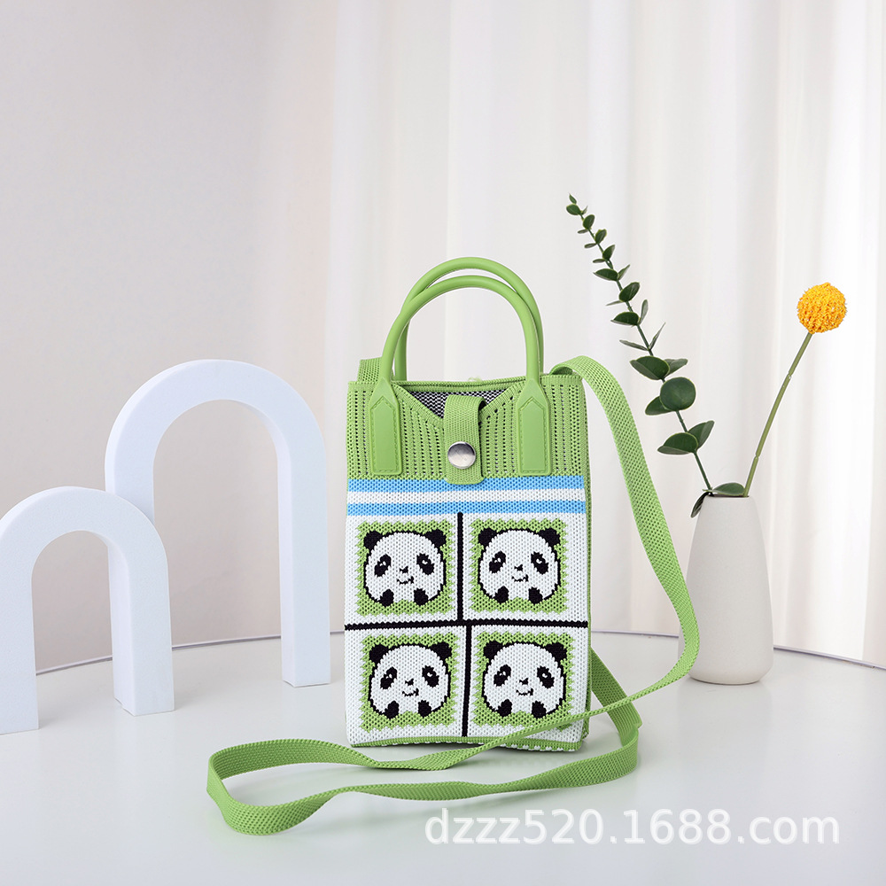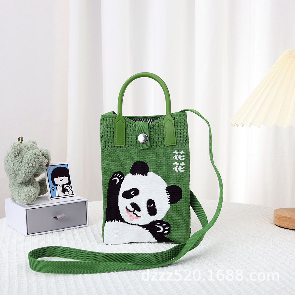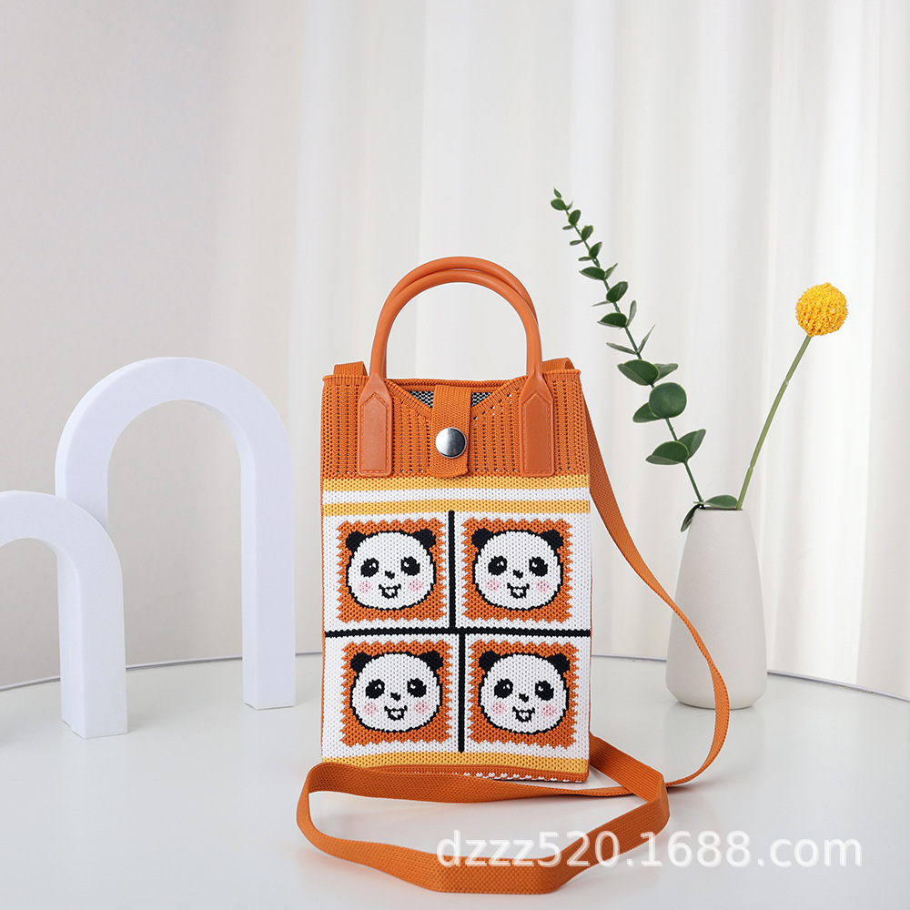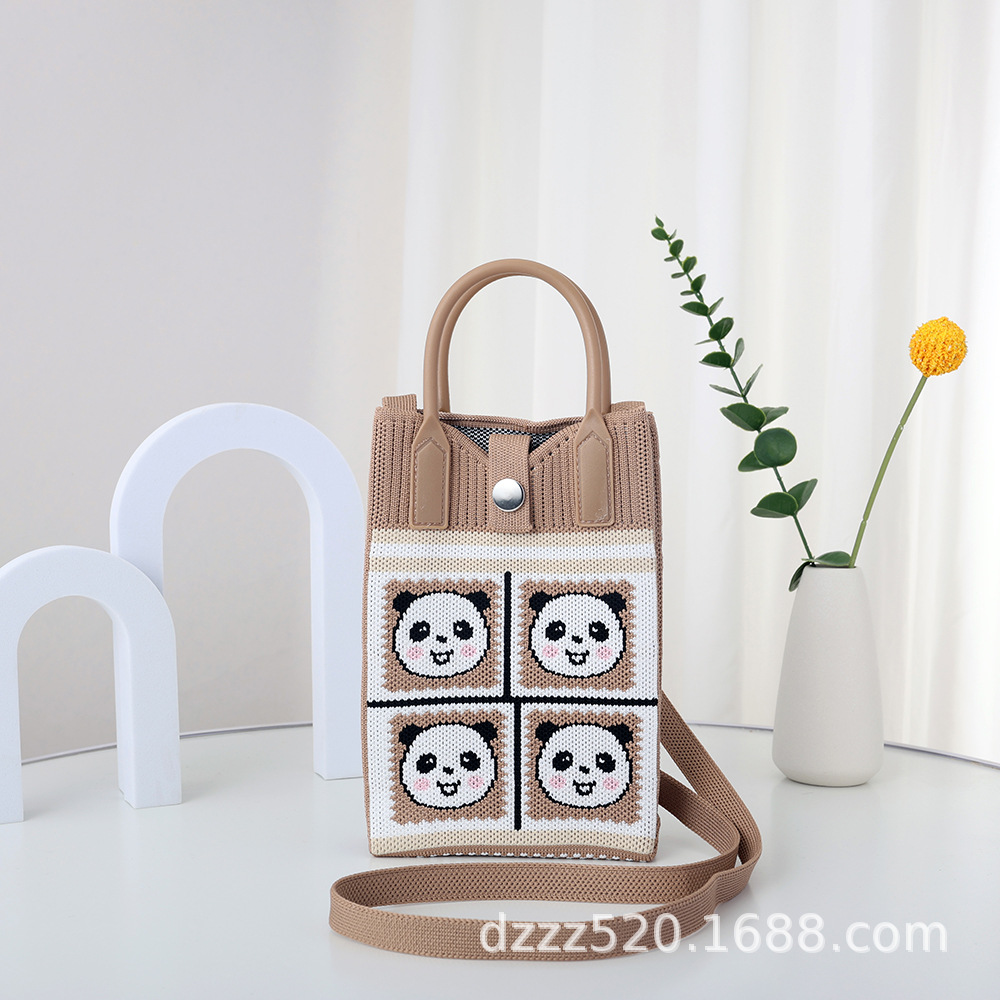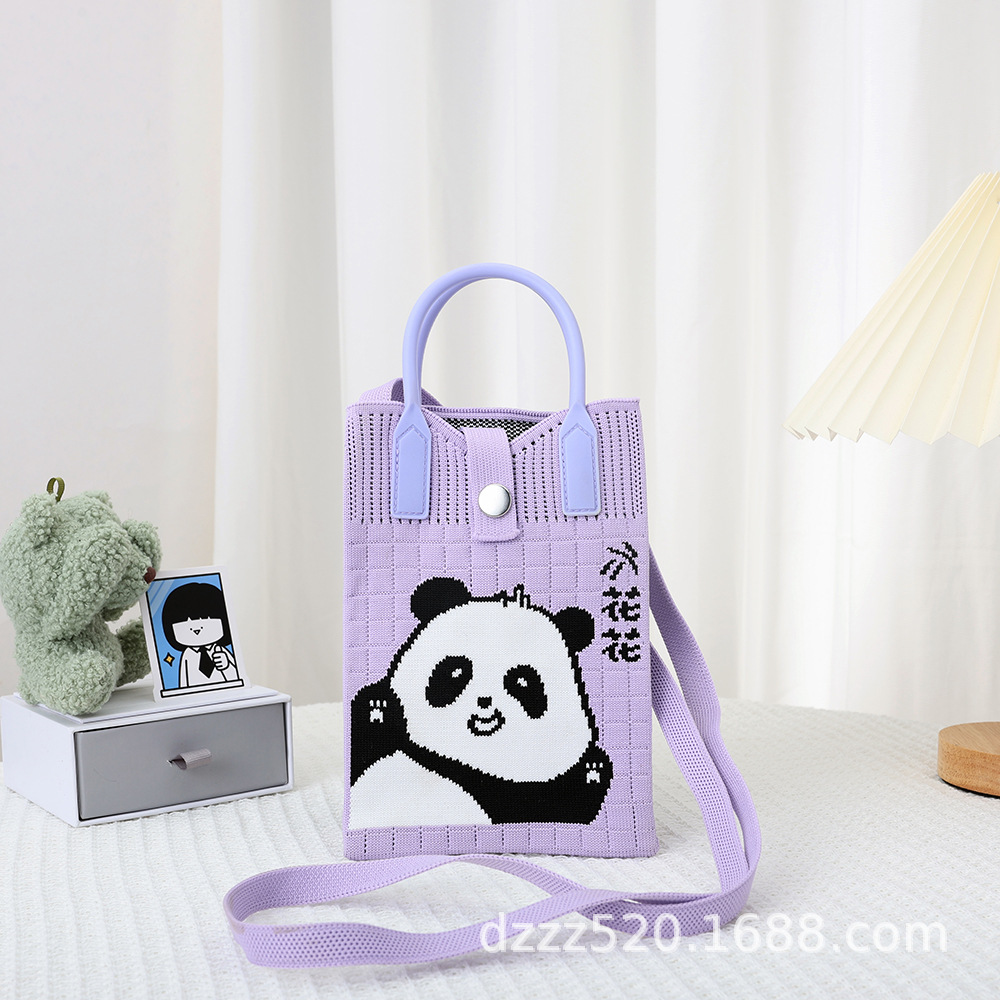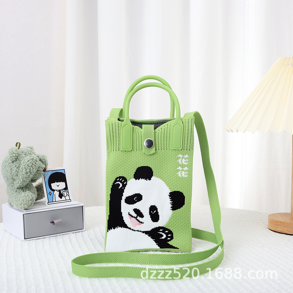 新作韓国風パンダニットバッグ、ハンドバッグ、ネットで話題の成都おじいちゃんパンダ、個性的なショルダー/斜め掛けバッグ