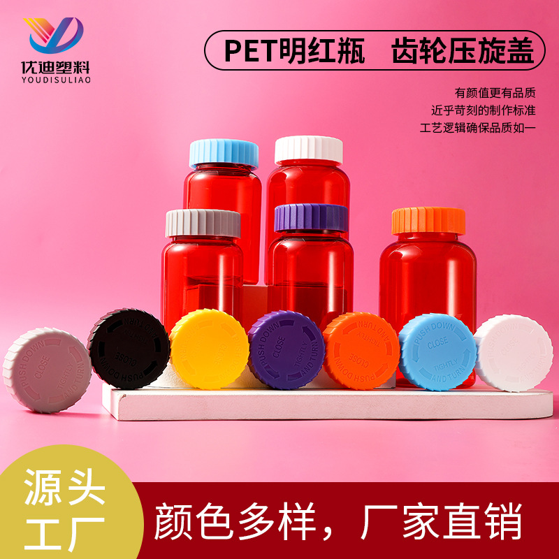 新型現物歯車圧旋蓋80-150ml赤色カプセル瓶食品級ペットボトル分注瓶が厚くなった