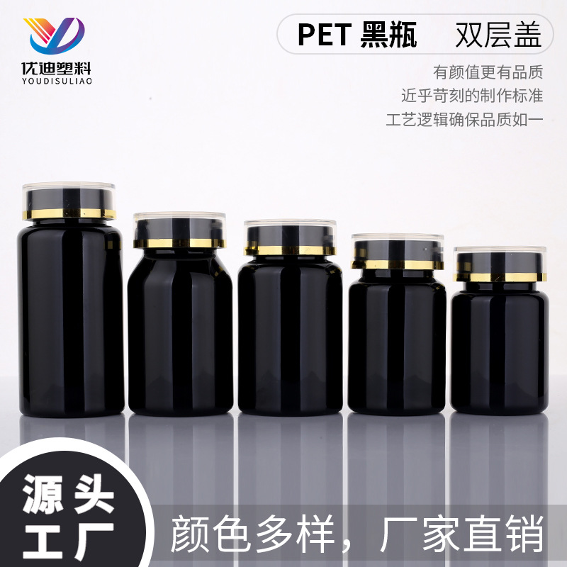 80ml 100ml黒瓶二重蓋メーカー卸売りペットボトルPETサンプル瓶分注瓶空瓶
