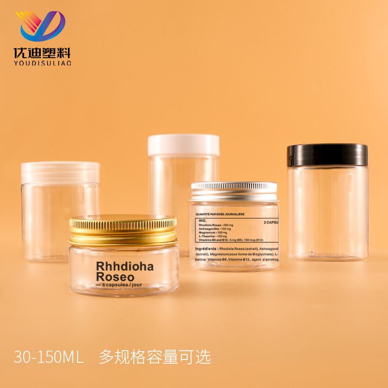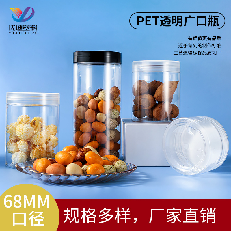 68歯PETプラスチック広口ボトル150ml穀物プラスチックジャー500ml透明広口ボトルPET収納