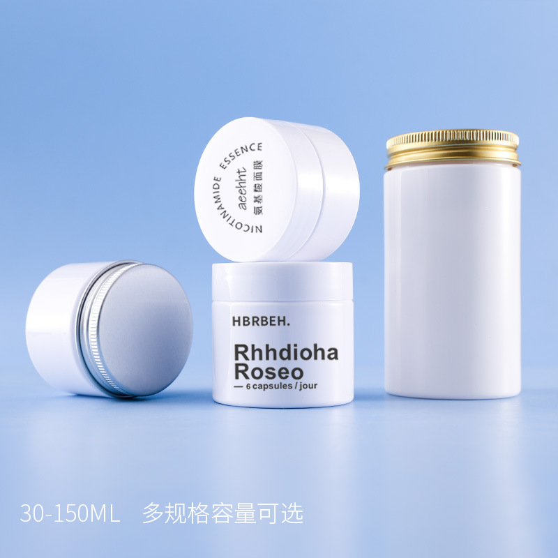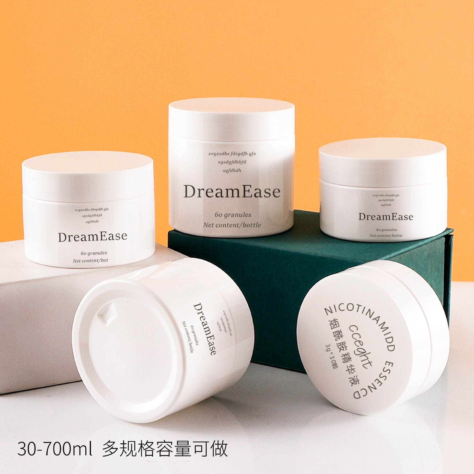 ペットプラスチック製白色広口ボトル30-500gクリームボトル、フェイスクリーム詰め替えボトル、ヘアマスクジャー、越境専用