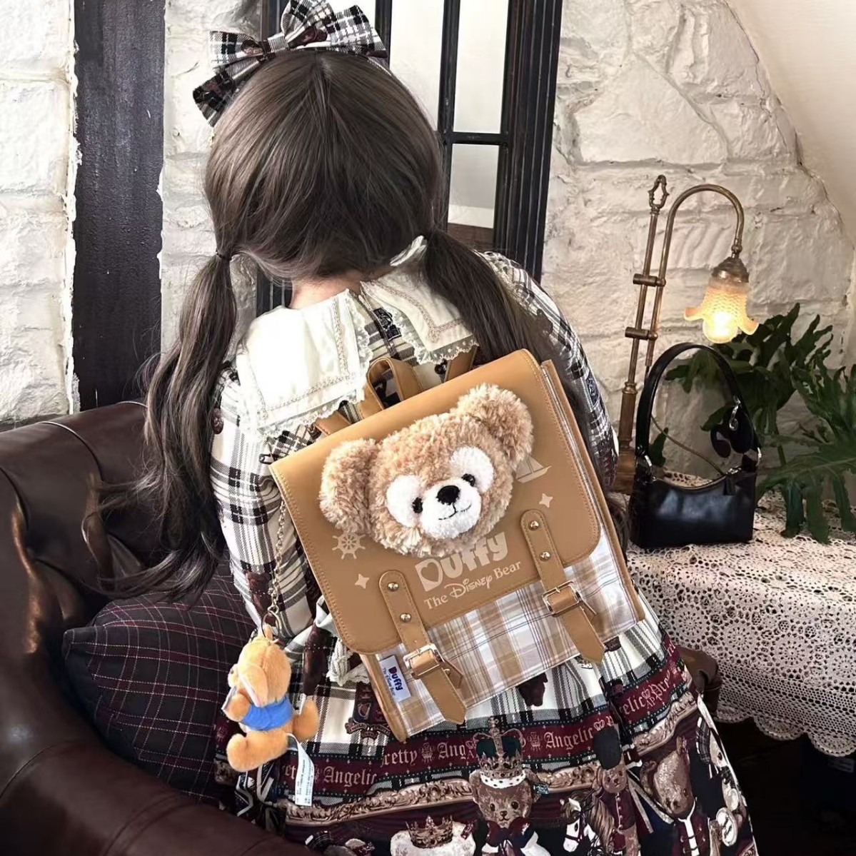 ランドセル風インスタ映えダッフィーシェリーパンケーキぬいぐるみバッグ、漫画風ショルダーバッグ、大容量学生用ドールバッグ