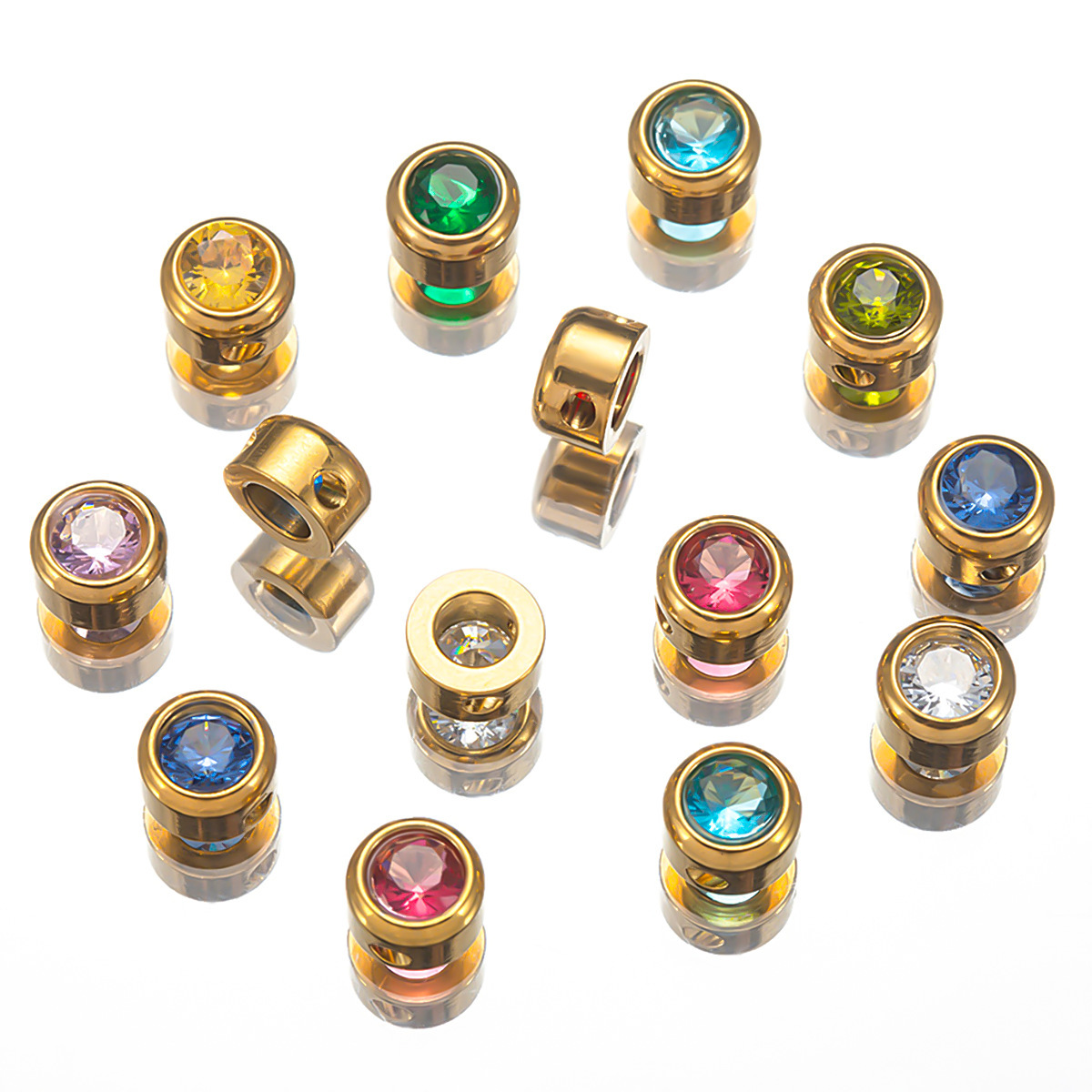 18K包金保色立体柱圆型锆石隔珠配饰diy手串编绳材料串珠饰品配件