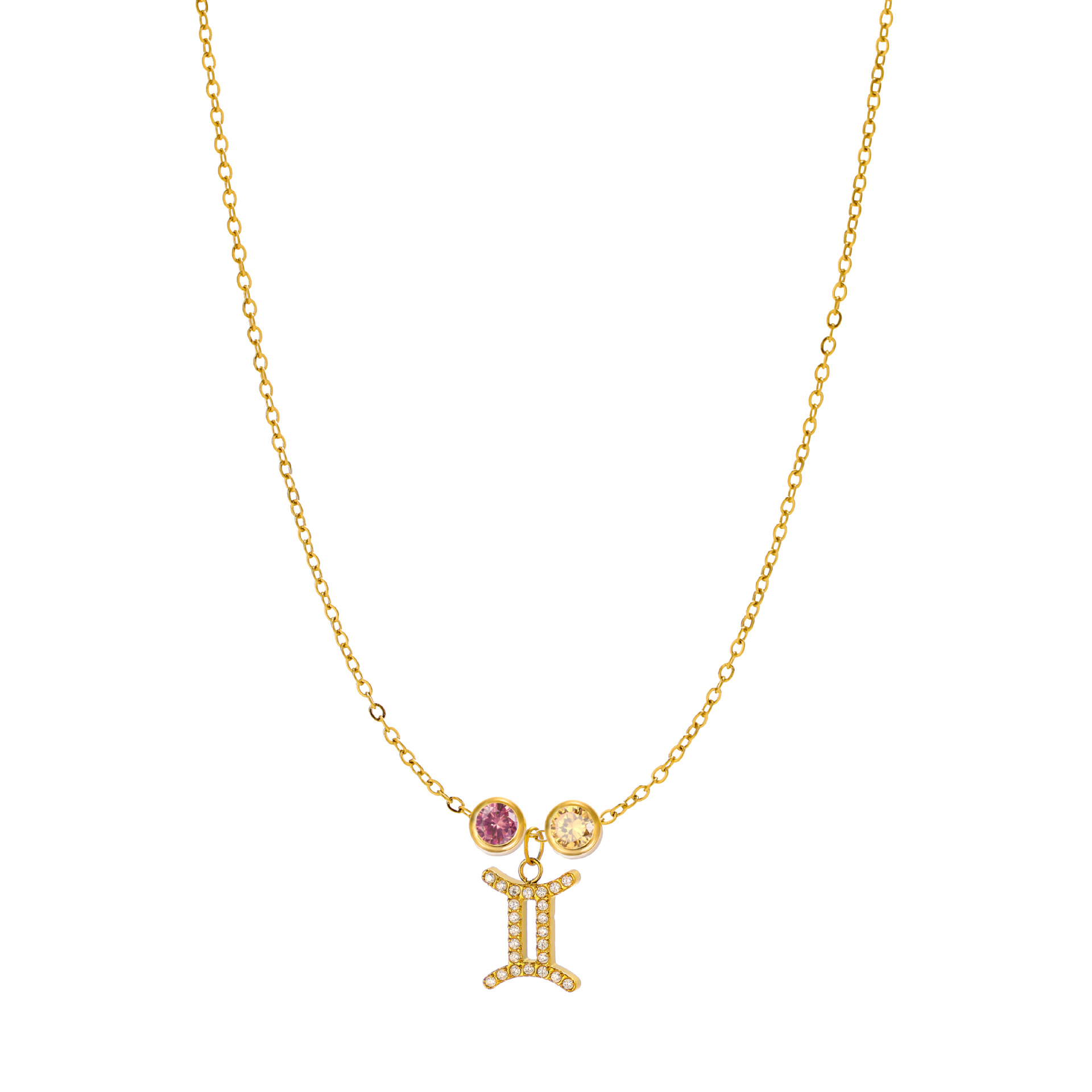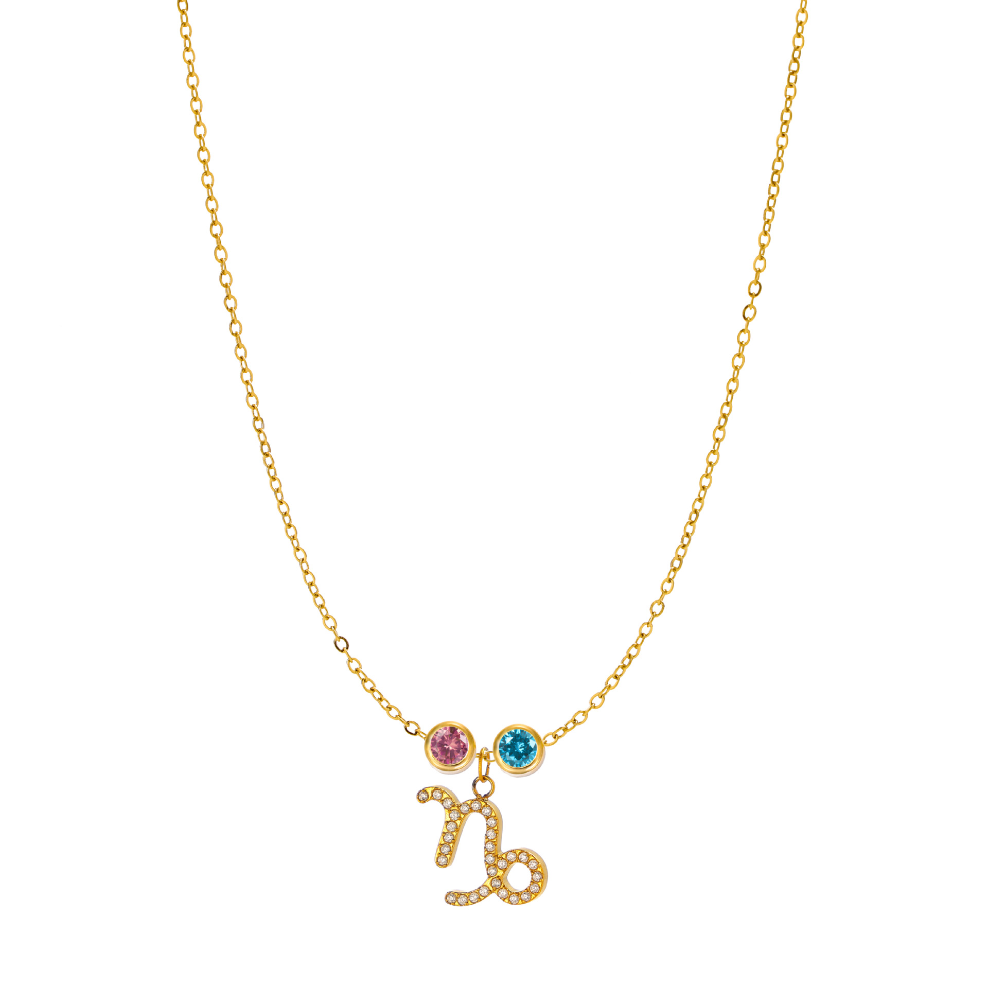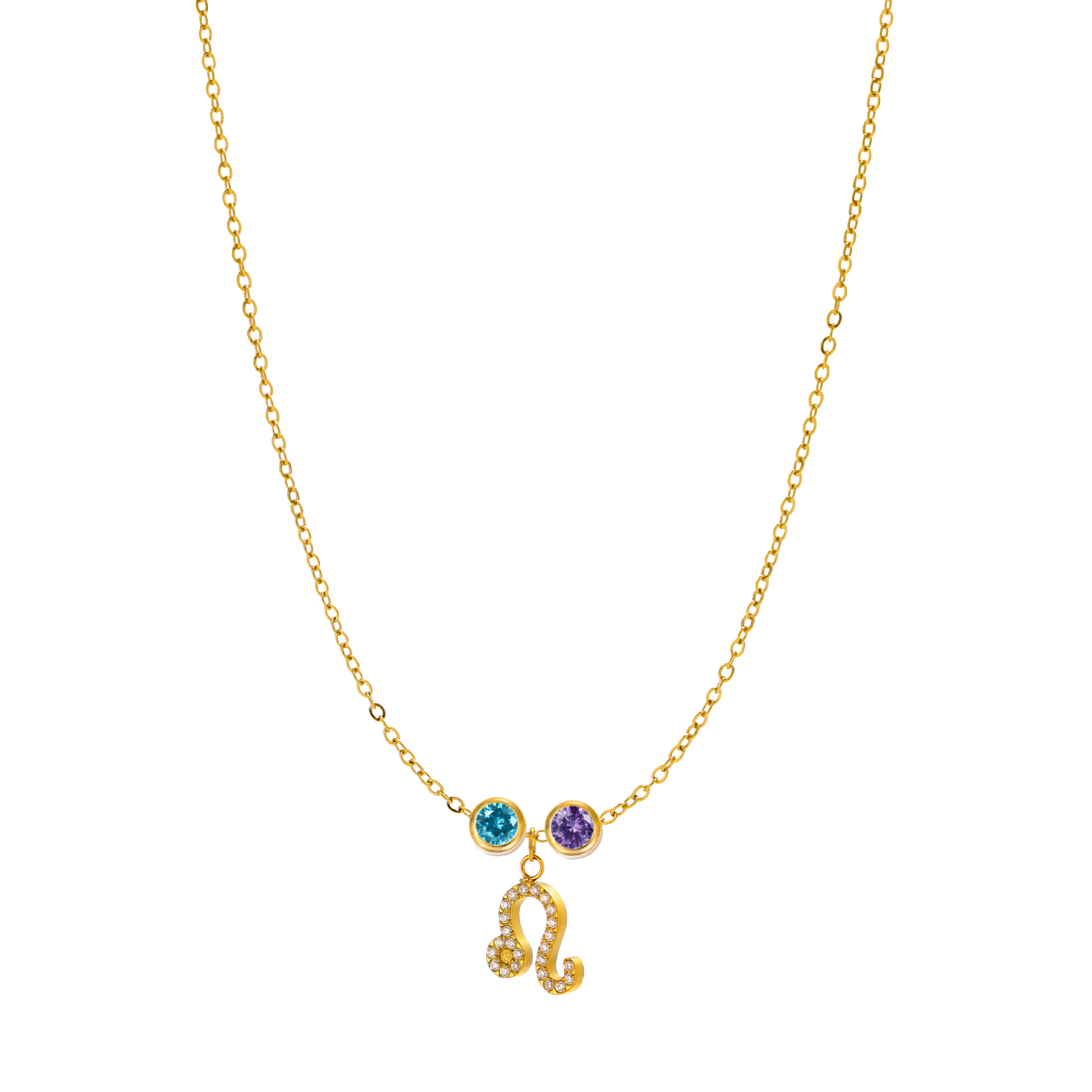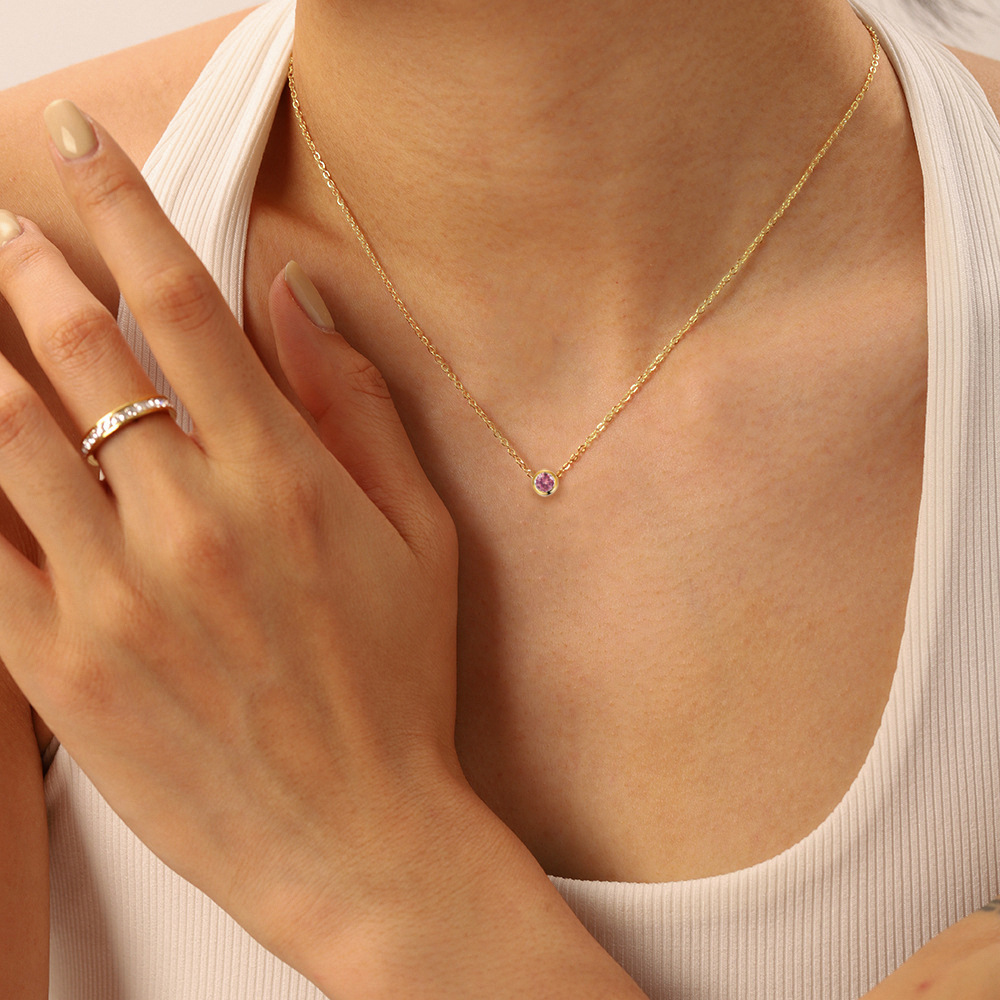 新型十二星座十二色誕生石チタン鋼金メッキ無変色鎖骨鎖カラー宝石ペンダント