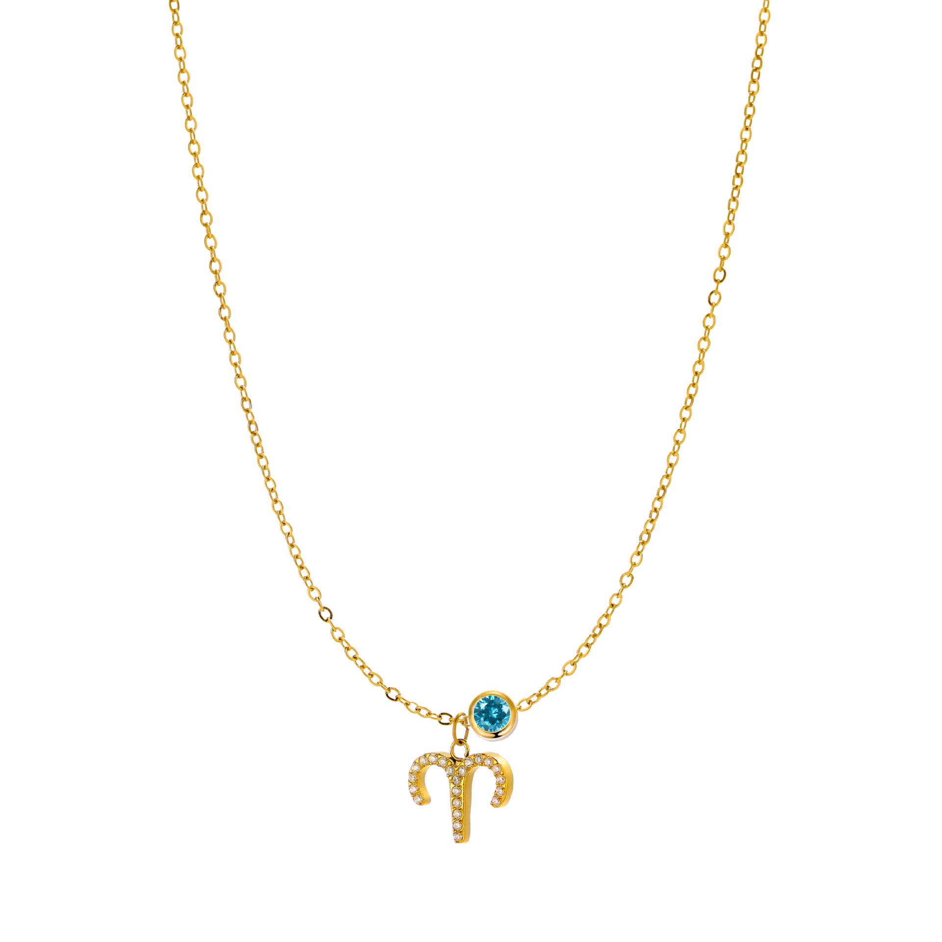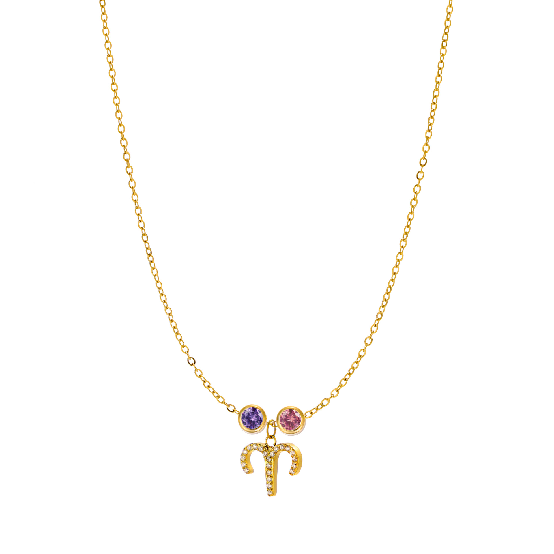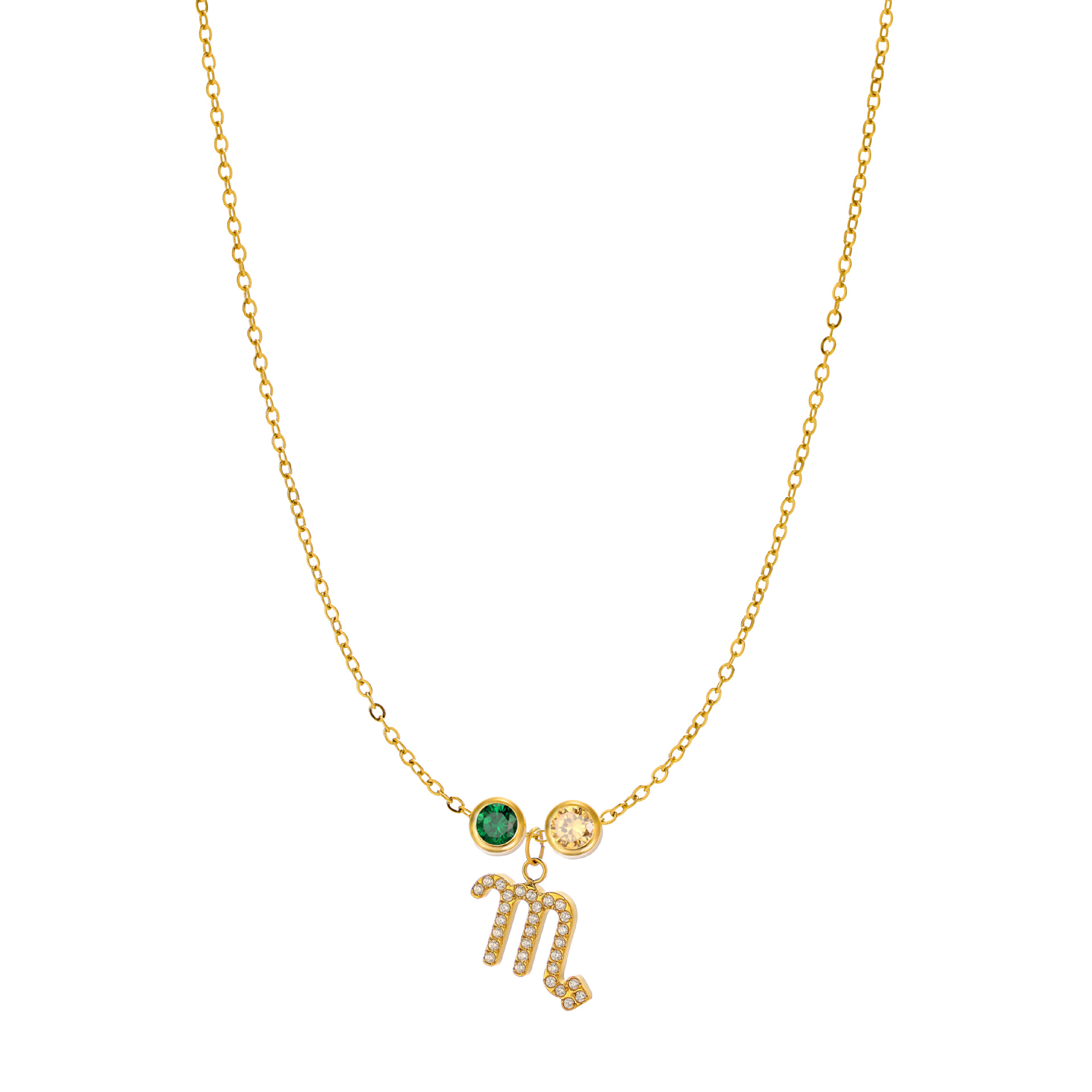新型十二星座十二色誕生石チタン鋼金メッキ無変色鎖骨鎖カラー宝石ペンダント