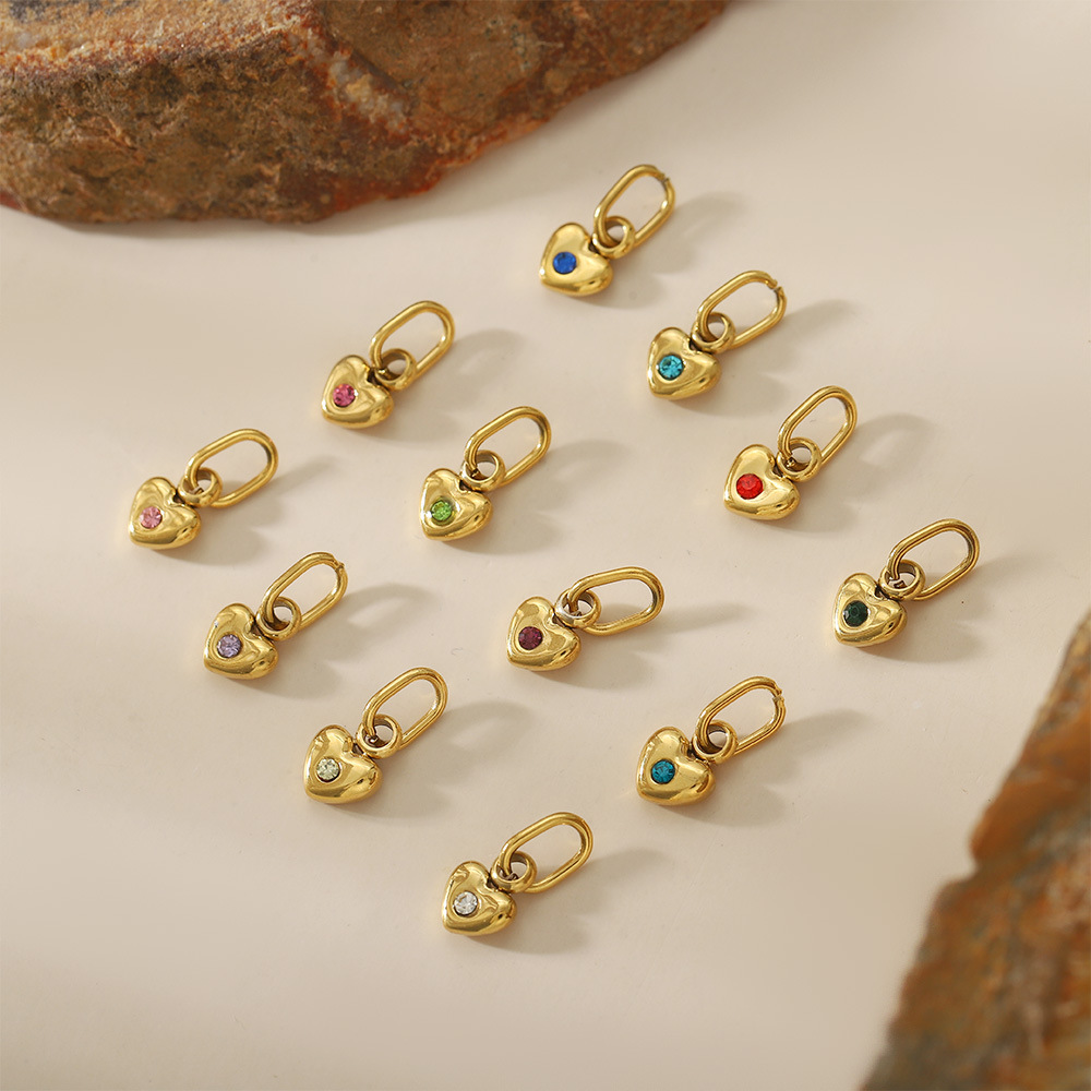 爱心桃心挂圈吊坠12月诞辰石微镶锆石手工 diy不锈钢配件首饰批发