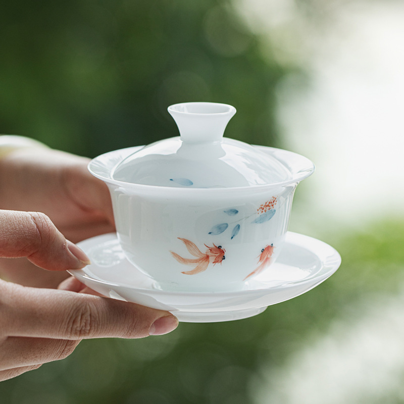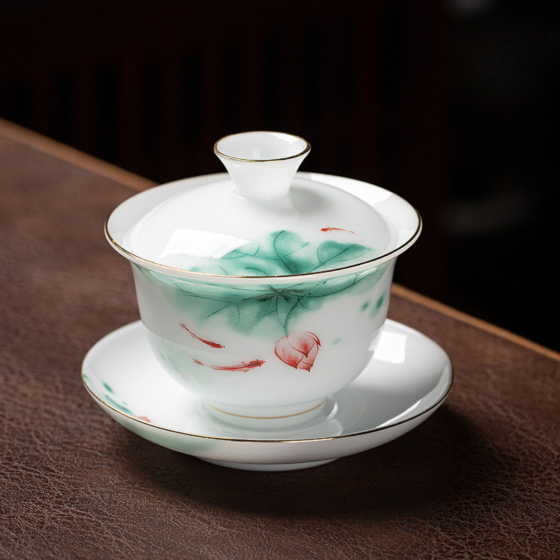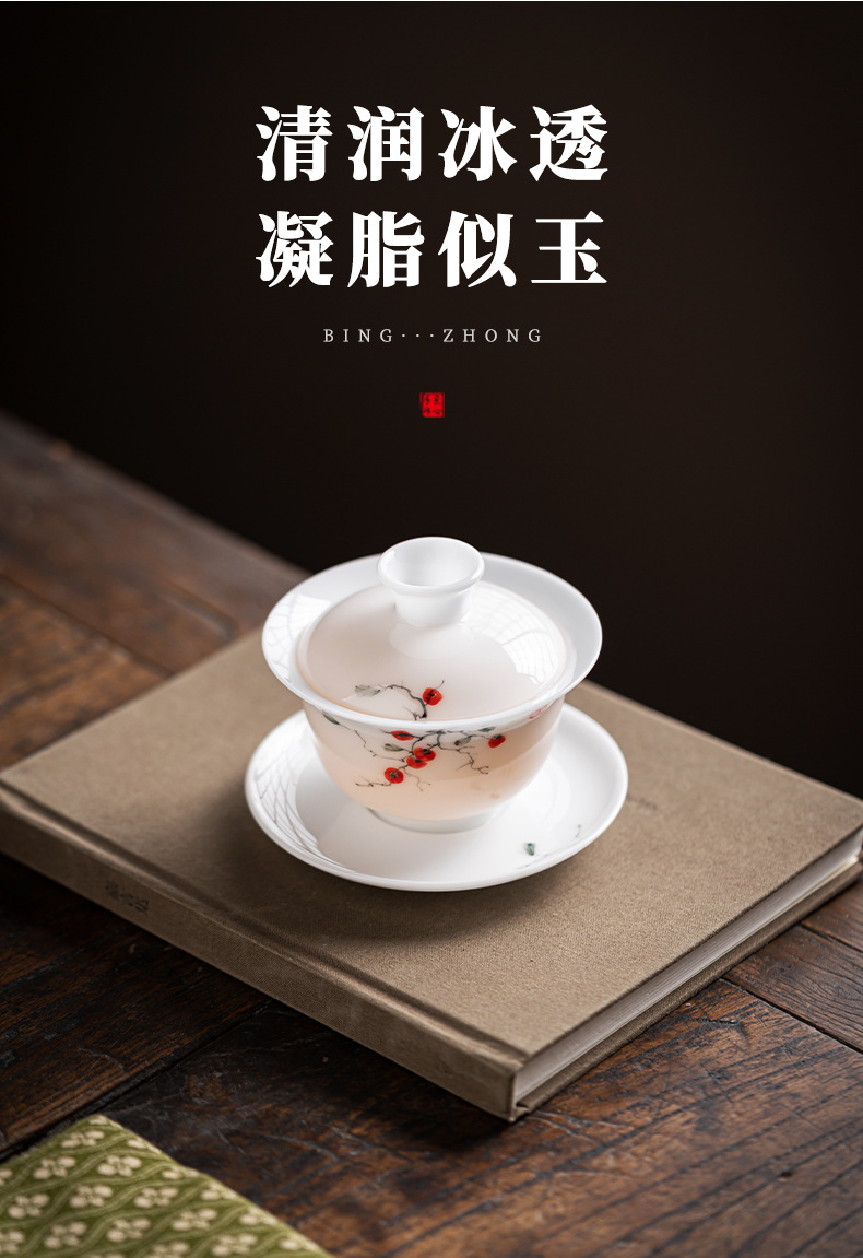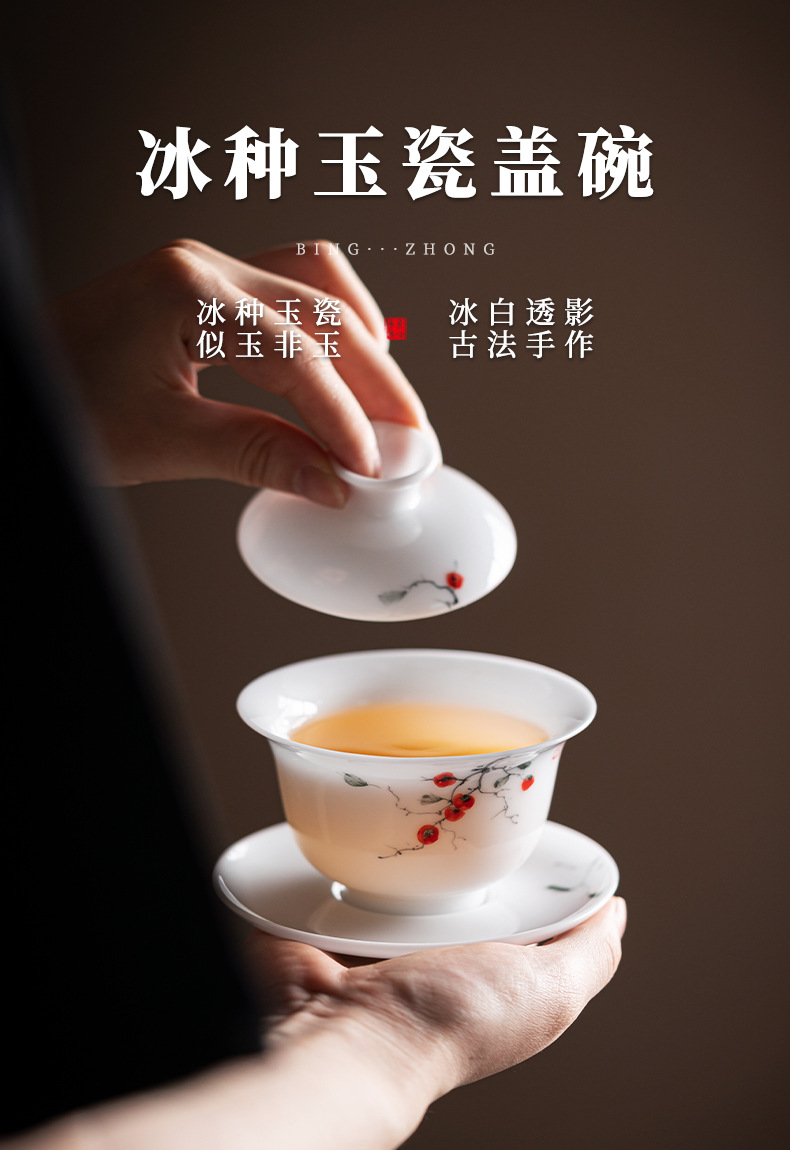 品 名:手绘冰种玉瓷盖碗