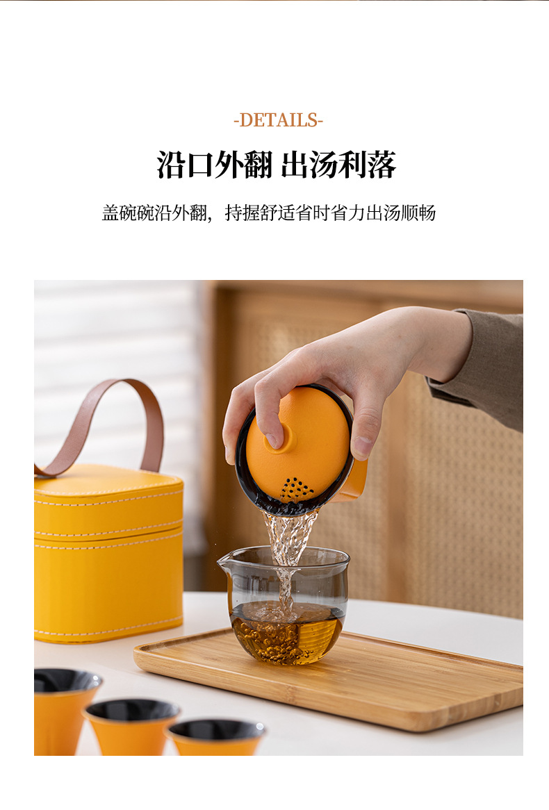 ポータブルトラベルティーセット、クイックカップ、セラミック1ポット、3カップ、ガラス、フェア、アウトドアトラベルギフト、カスタマイズ