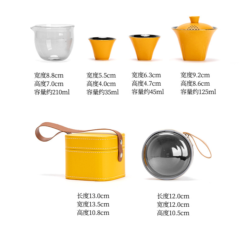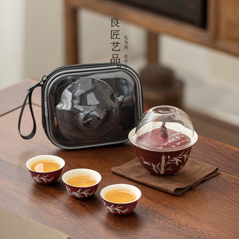 ガラス旅行茶器セット携帯式陶磁器快客杯セット屋外工夫茶杯ティーポット