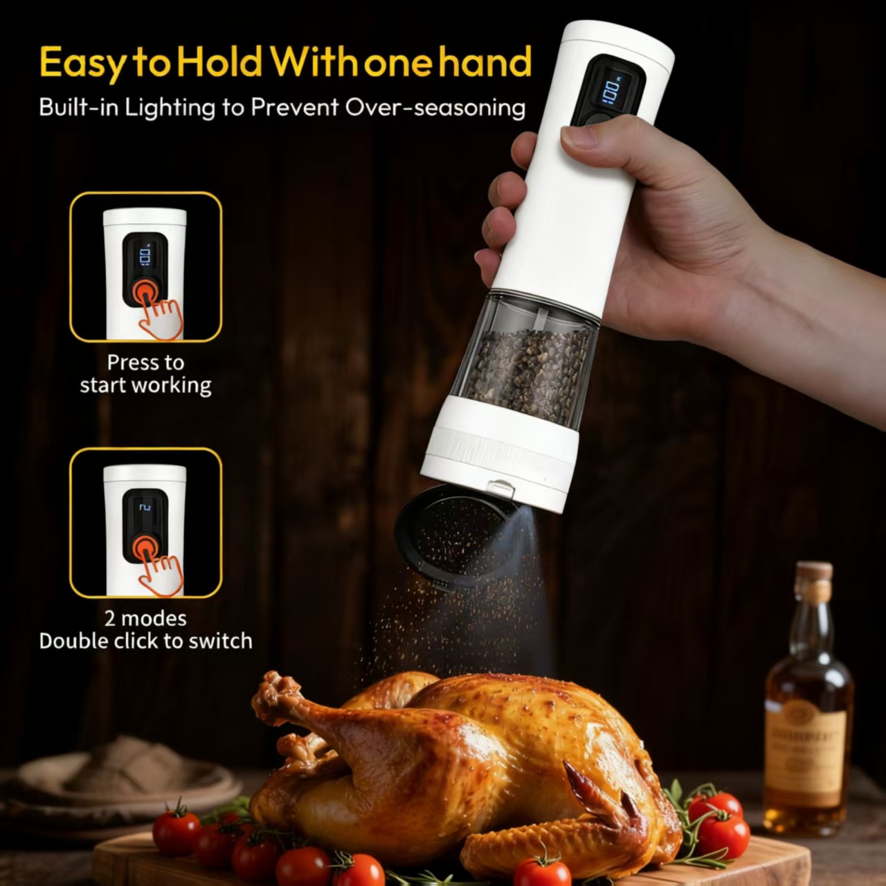 跨境新品胡椒粉海盐研磨器电动家用研磨器不脏手粗细外部调节
