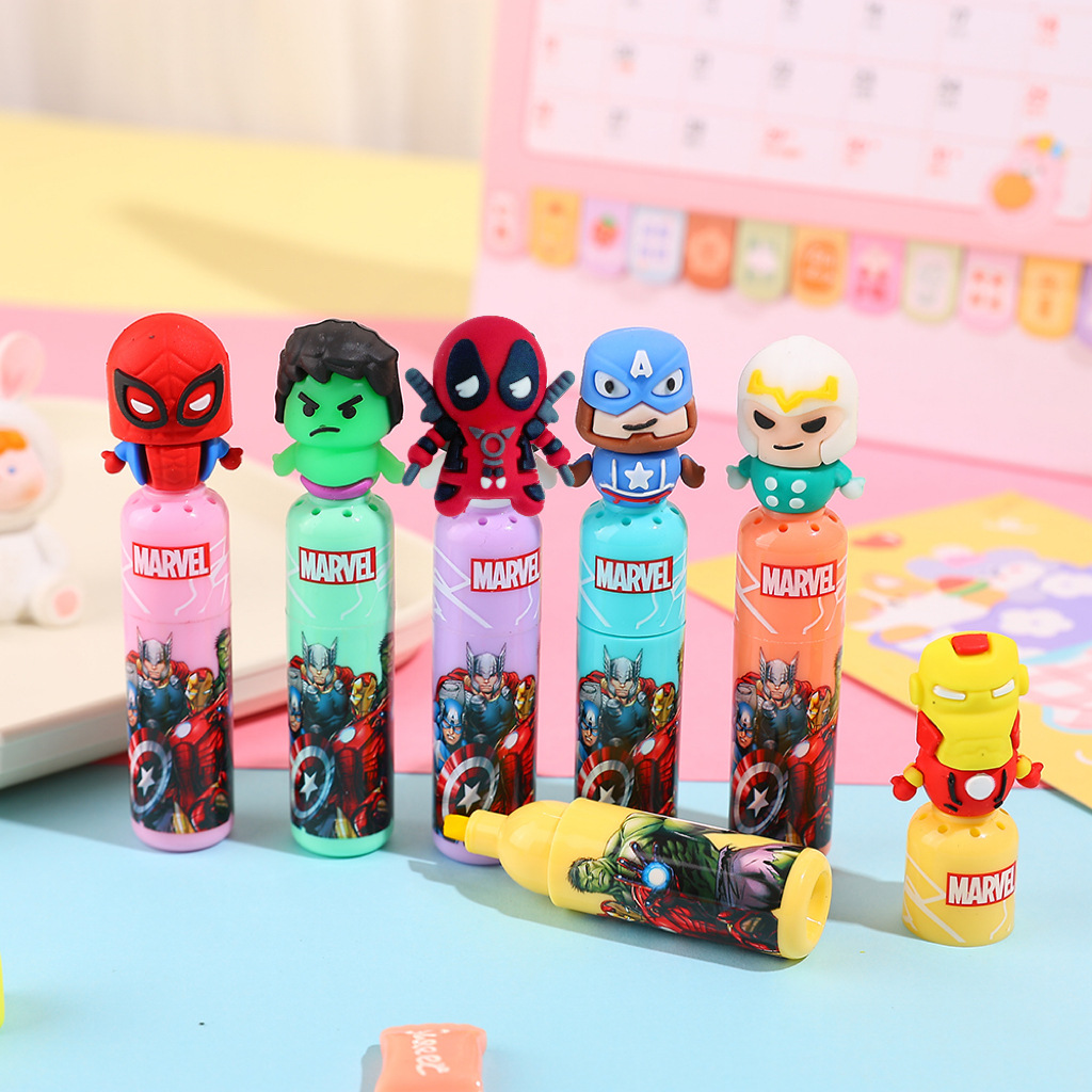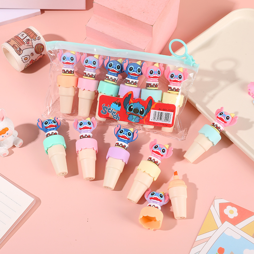 6支史迪漫威卡通迷你冰淇淋荧光笔记号笔荧光笔套装马里奥标记笔