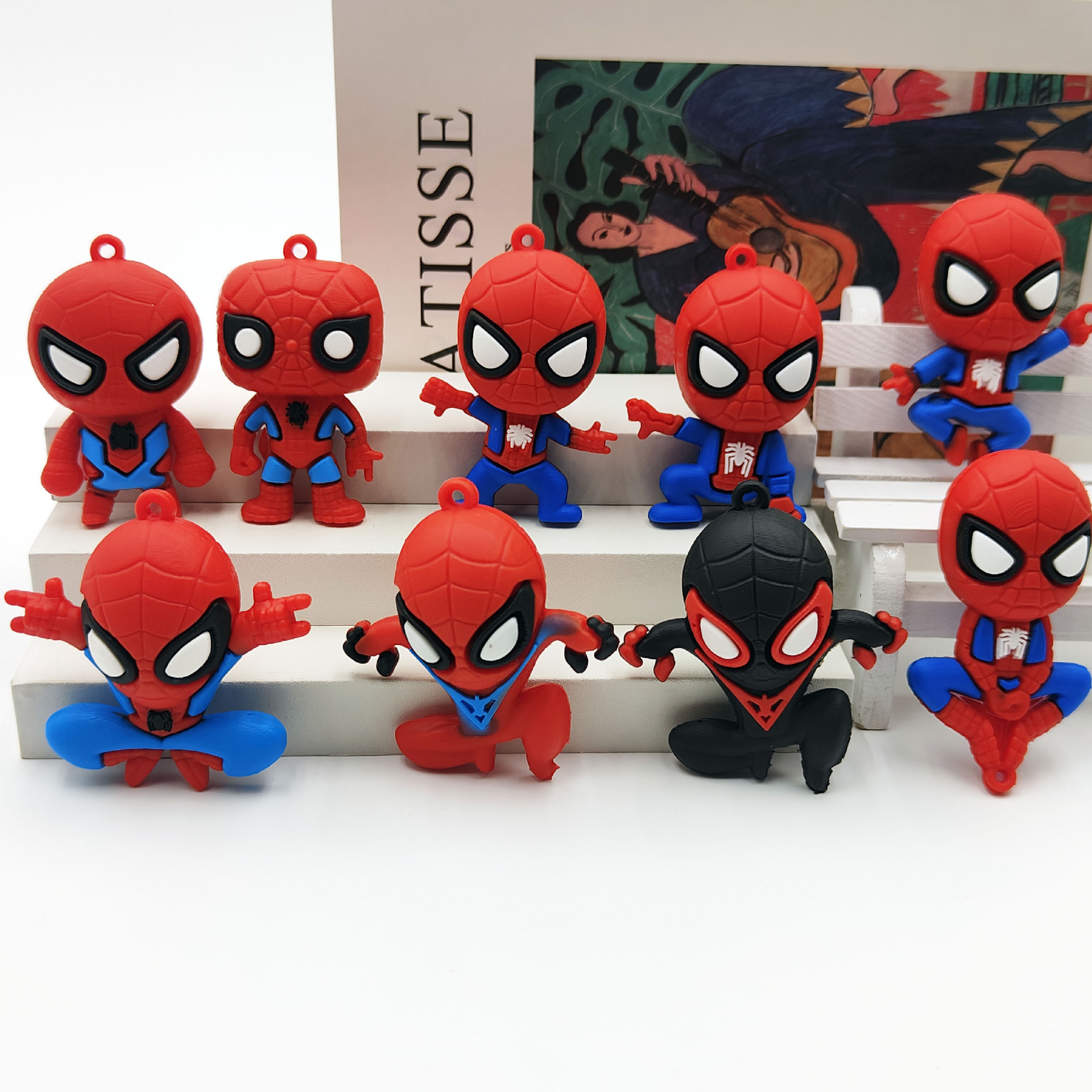 厂家直销9款蜘蛛侠公仔钥匙扣挂件立体pvc软胶漫威英雄摆件小礼品