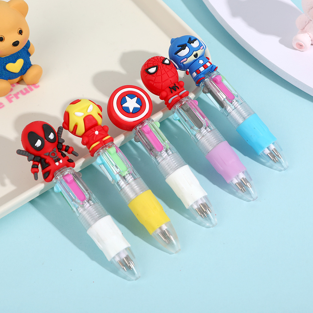 迷你4色笔漫威史迪仔马里奥小猫小四色圆珠笔可爱卡通按动圆珠笔