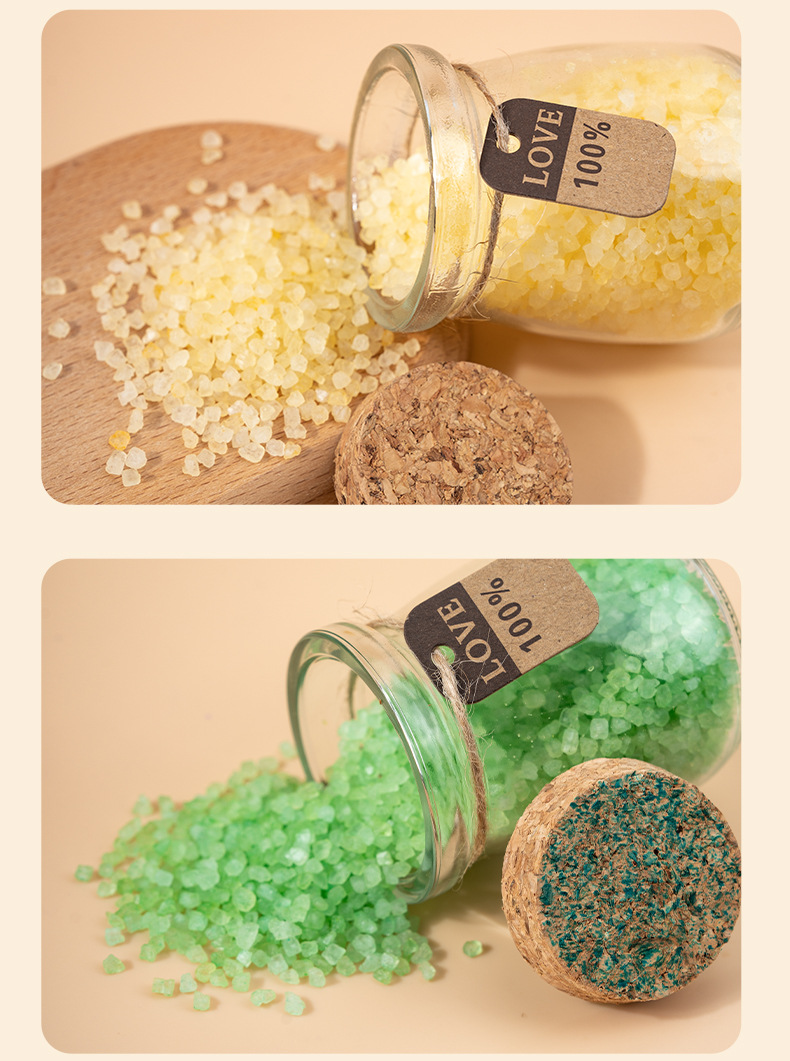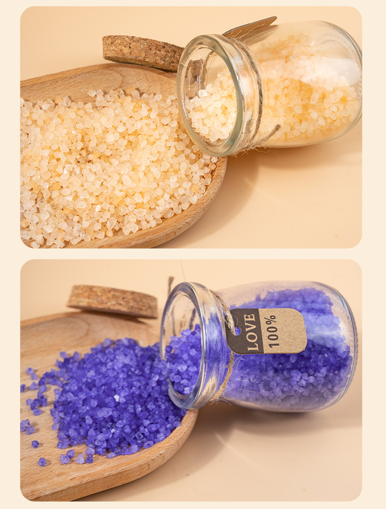 カスタマイズされたバスソルトボール海塩ボトル入り OEM ヒマラヤバス保湿肌ミネラル結晶粒子