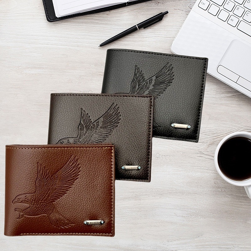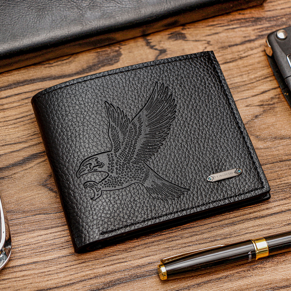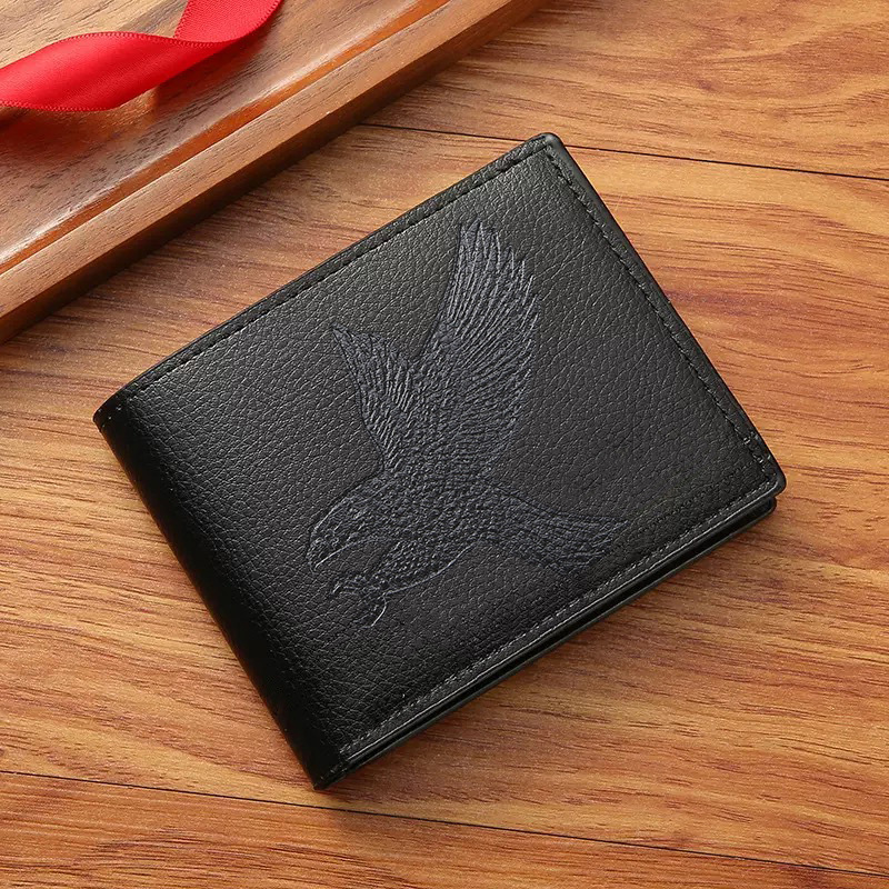 国境を越えた新型男性の短い財布の柔らかい皮の薄いタイプのタカの図案の高い顔の値の速売はアマゾンの起爆金に通じます。