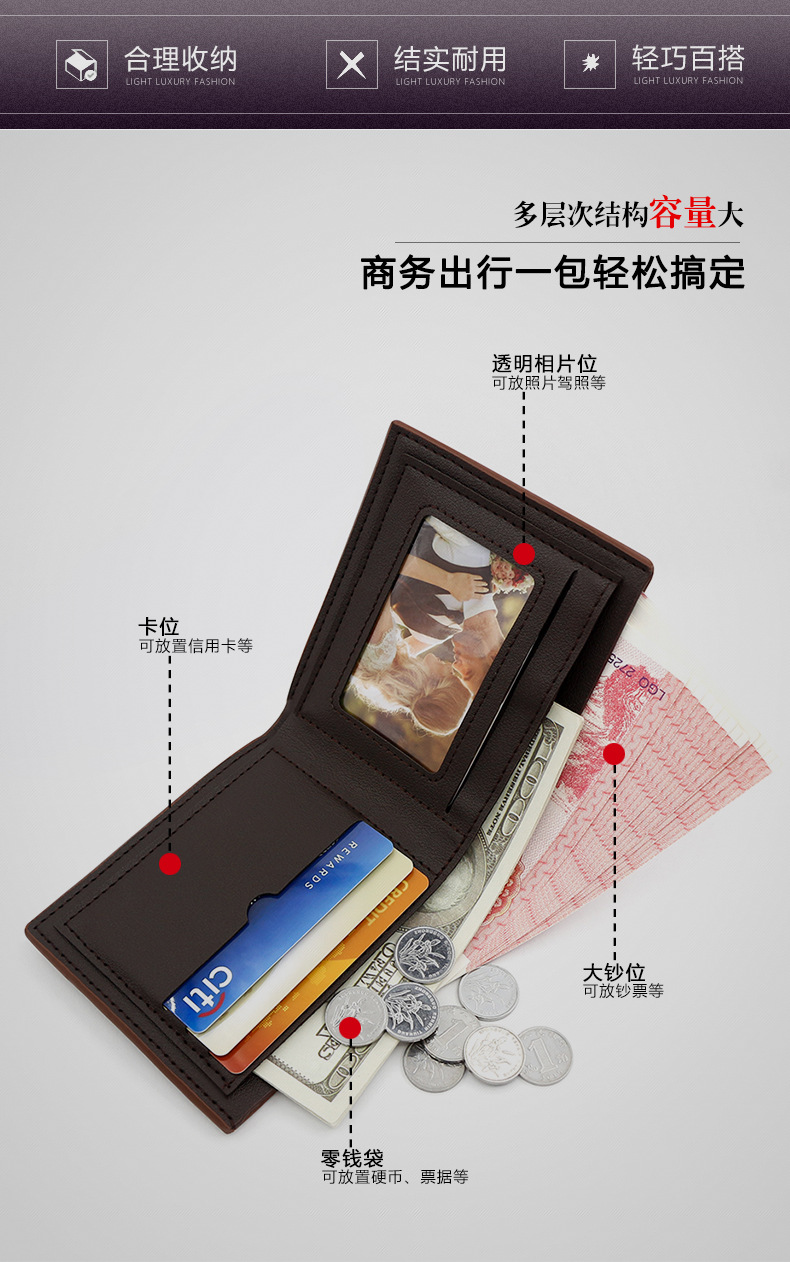 新款钱包男士商务休闲短款男士青年休闲驾驶证皮夹银包