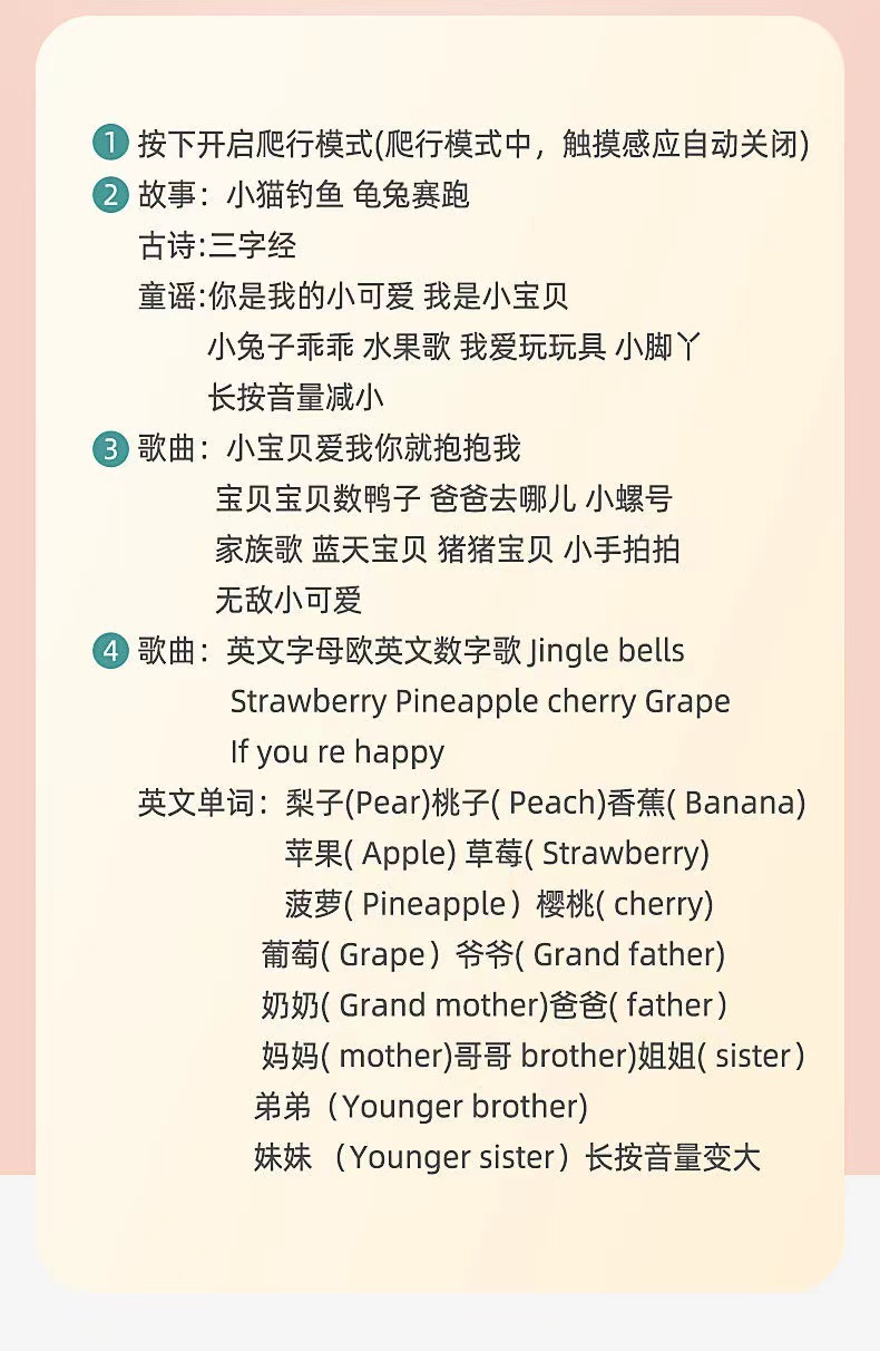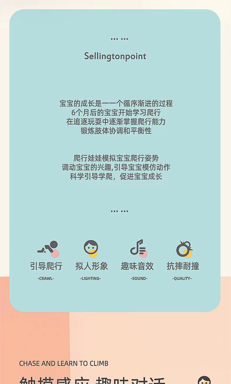 視覚、知能開発、爬行、手を動かして頭を動かす、握る、感覚、手の目