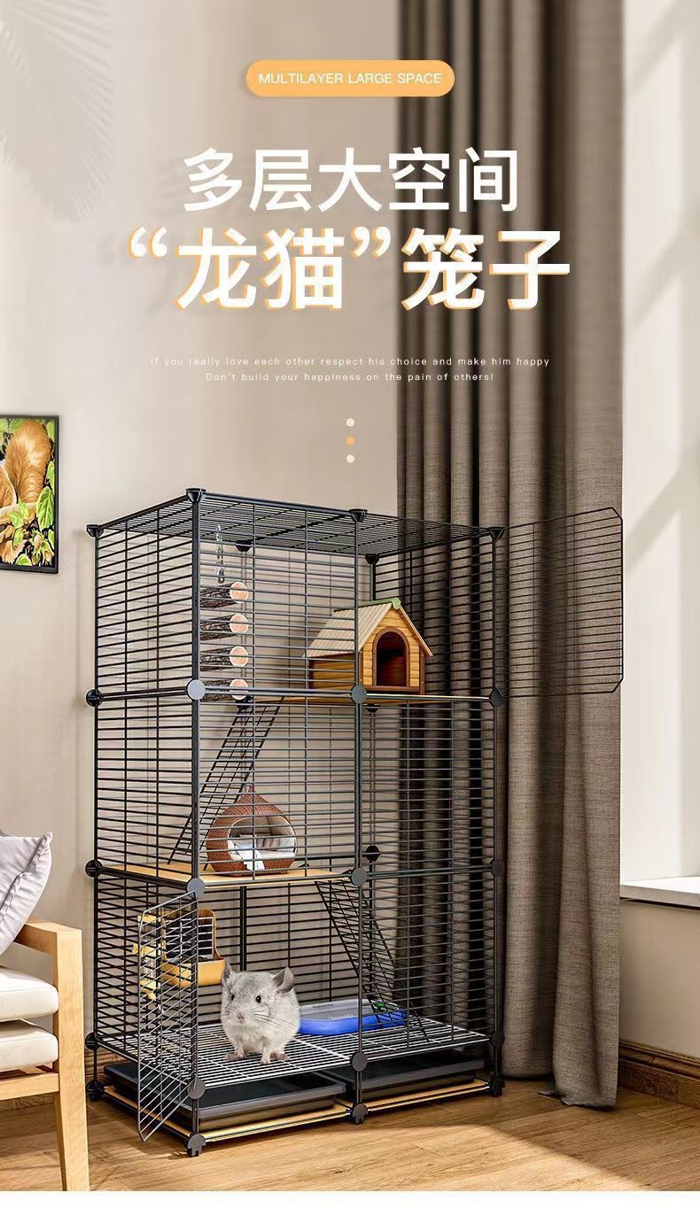 リスのかごの竜猫の箱のかごの大きいサイズの多層の家庭用の子供のペットの暗号化の花枝のネズミの蜜の袋はパレットの別荘を持っています。