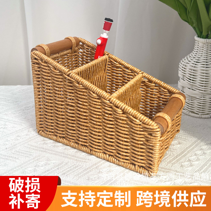 模造藤編み引き出し箱家庭用新中国式文房具収納ケース食卓デスクトップリモコン雑物ケース