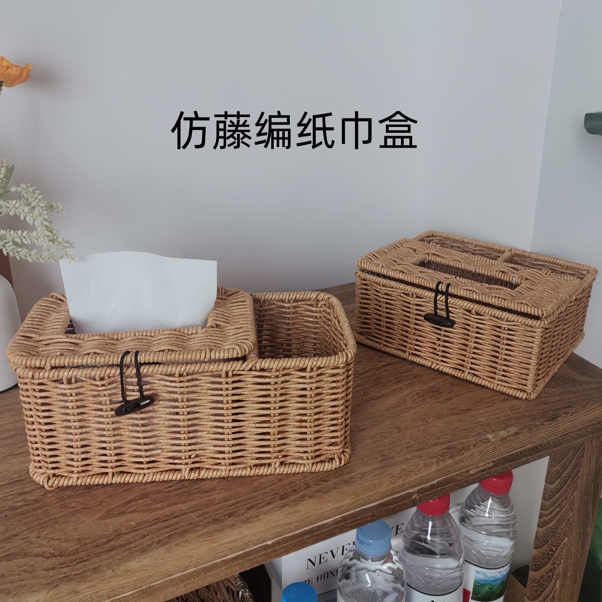 籐編みティッシュボックスデスクトップリモコン収納ボックスリビングルーム茶何紙引き出しボックス多機能分割ティッシュボックス