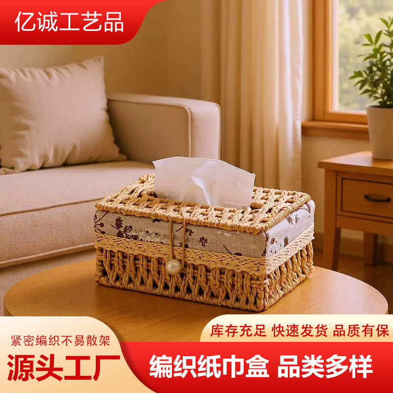 ティッシュボックス家庭用引き出し箱草編みリビングルーム茶何多機能収納ボックスリモコン収納アイデア