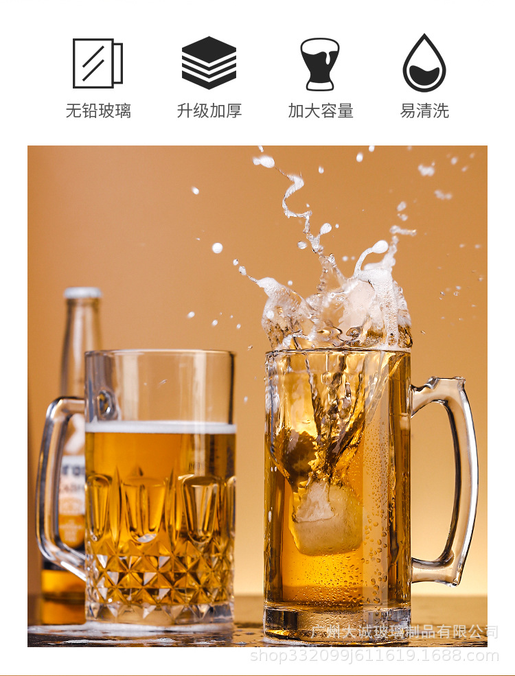 商用厚手ビールマグガラスザビールカップウォーターカップ泡カップバーバーベキュー店500mlハンドル付きダイヤモンドカップ