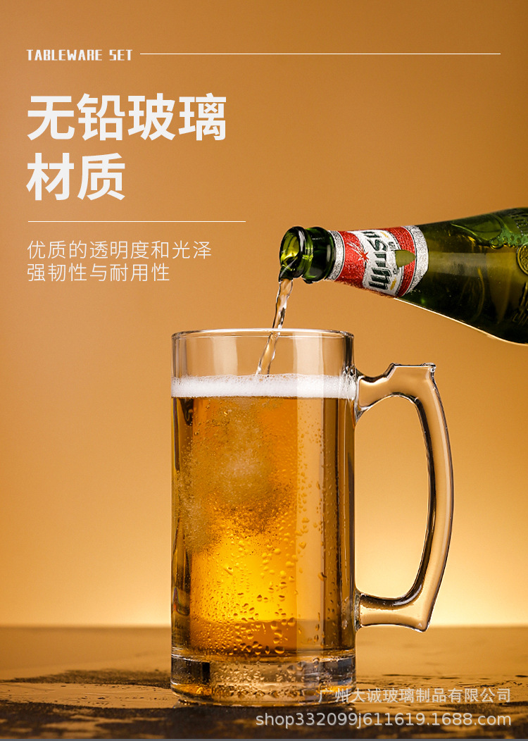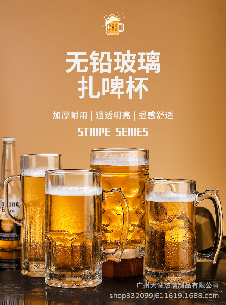 加厚扎啤杯超大容量啤酒杯把杯英雄杯饮料杯玻璃杯商用可印logo