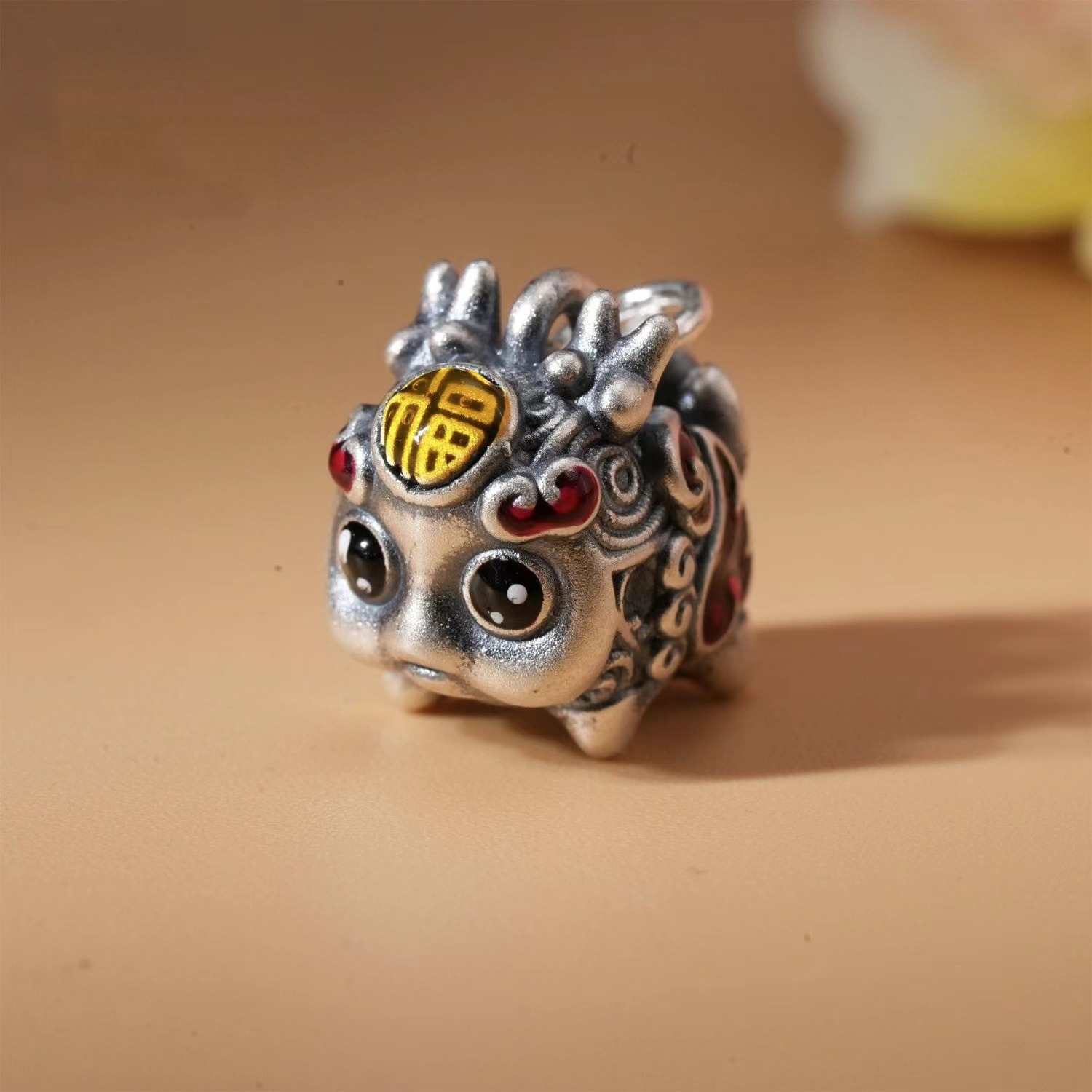 ペンダント舞獅子ペンダント覚醒獅子舞獅子ペンダント復古3dハード銀DIY手作りビーズ材料アクセサリー
