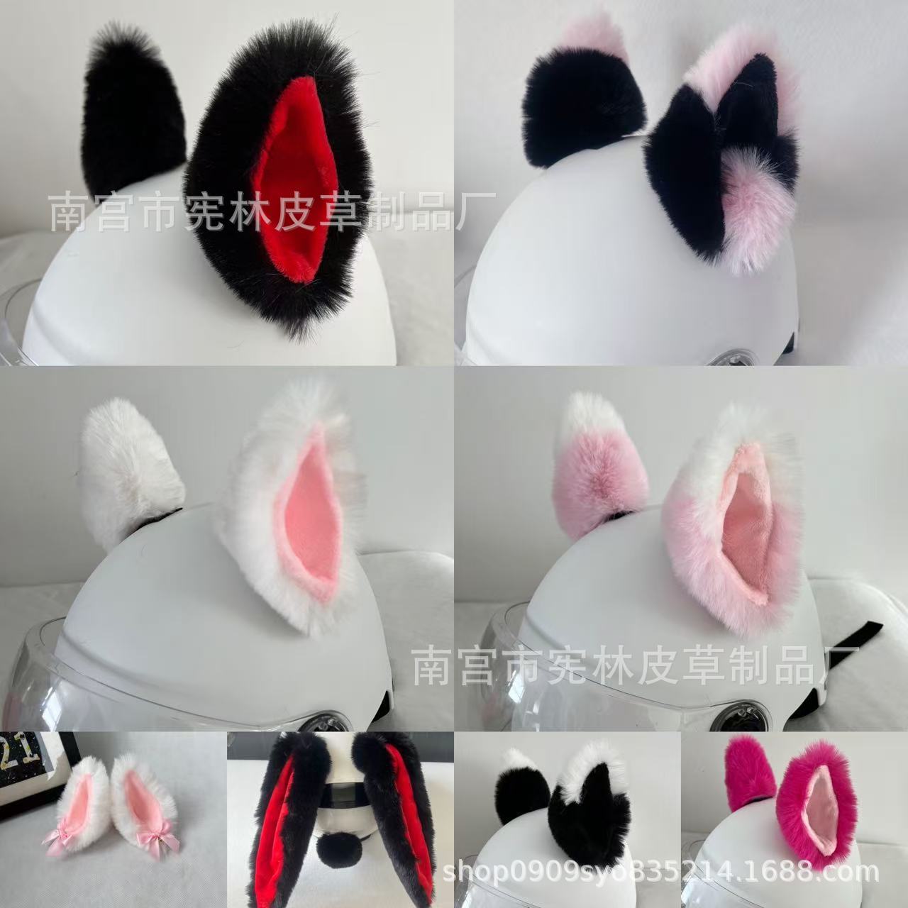 头盔毛绒装饰品 机车电动车头盔配饰猫耳滑雪 摩托车毛绒耳朵跨境