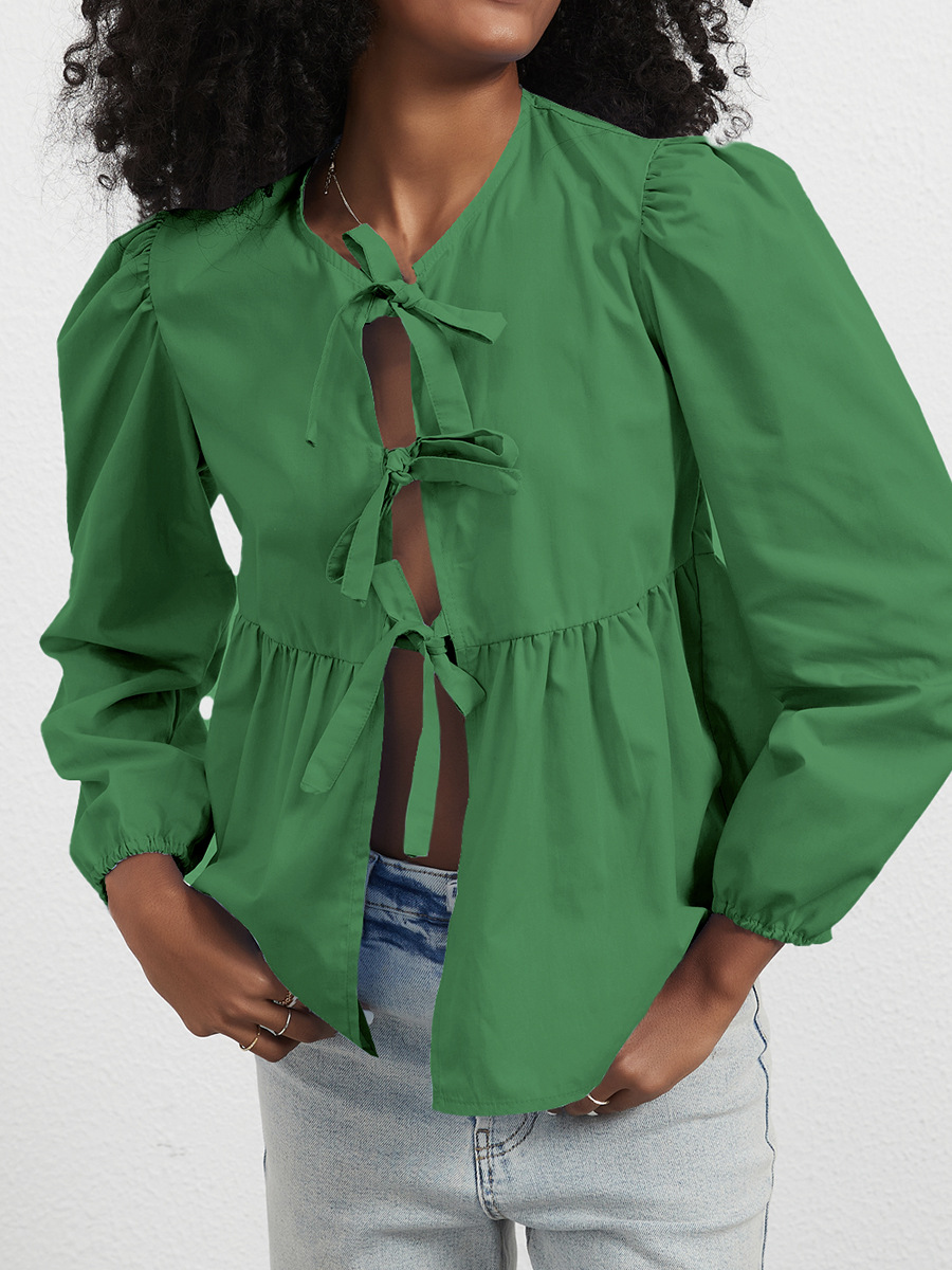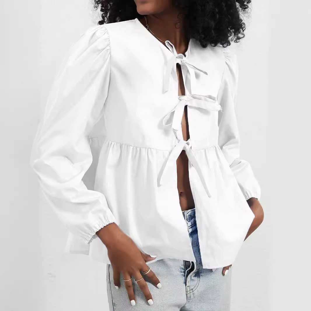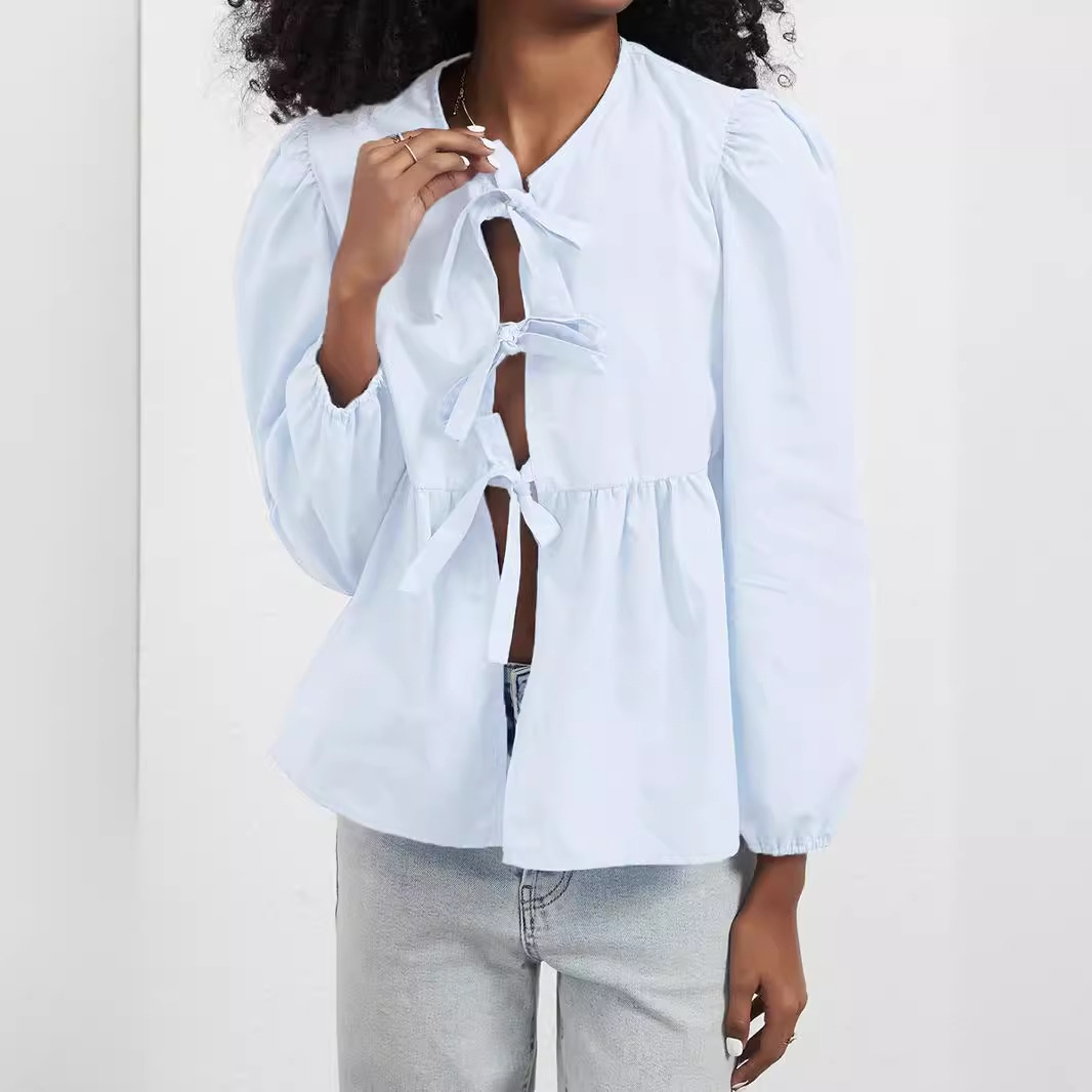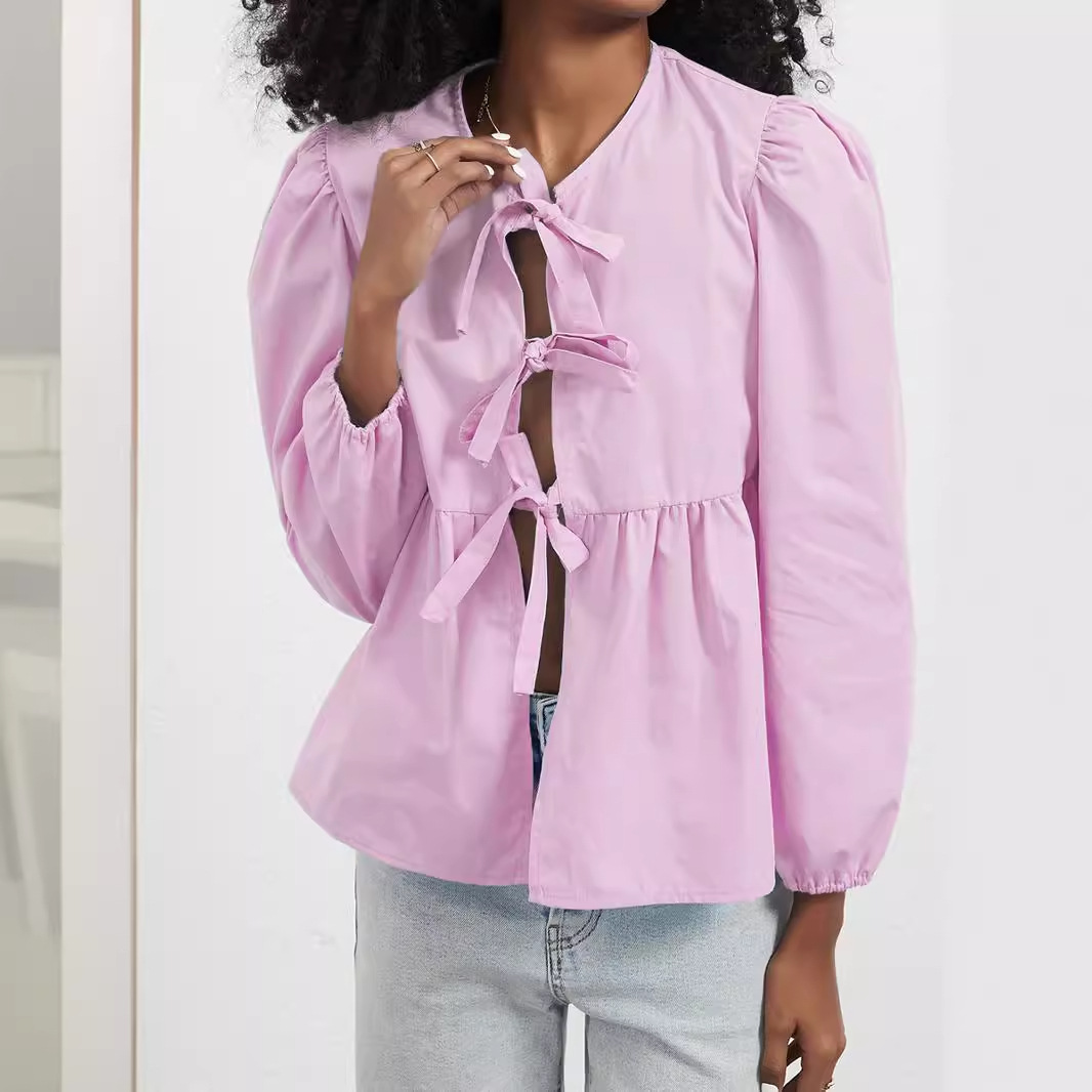 国境を越えた女装卸売り欧米風春夏の新型ゆるい甘い蝶ネクタイ長袖シャツ上着
